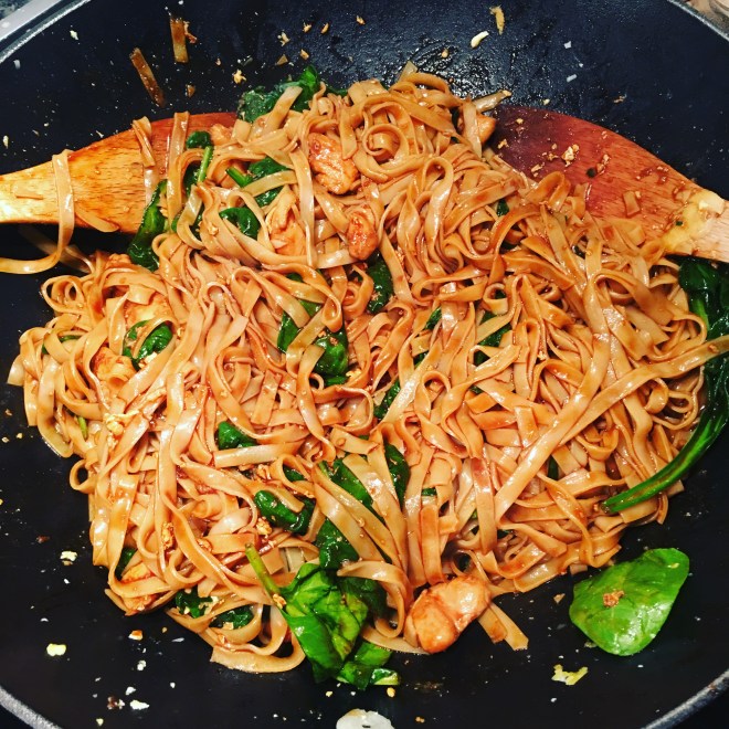 Seit Jahren schon koche ich – vor allem während der Woche – sehr häufig asiatische Gerichte aus dem Wok. Die Bandbreite der Rezepte ist riesig, häufig vegetarisch und absolut abwechslungsreich, viele Gerichte stammen aus Indonesien und Vietnam, dieses nachfolgende Pad See Ew ist allerdings aus der Thaiküche. Ich liebe die Vorbereitungen, dazu ein schönes Glas Wein und beim schnippeln und schneiden und rüsten und hacken lasse ich dann den Tag hinter mir und entspanne mich.