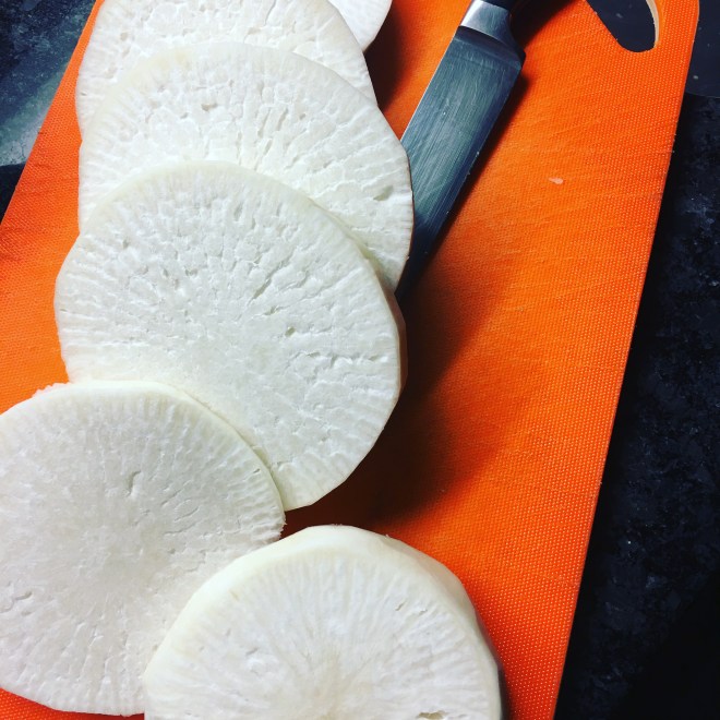Ein altes Gemüse neu entdeckt – die Steckrübe. Lange Zeit war sie mir nur ein Begriff aus Erzählungen der Grosseltern, da die Steckrübe im „Hungerwinter“ 1946/1947 häufig aufgrund Nahrungsmittelknappheit die einzige Basis für viele Gerichte bilden musste. Ihr Geschmack erinnert an Kohlrabi und man findet sie seit einigen Jahren wieder vermehrt in den Supermärkten und am Wochenmarkt im Angebot. Erntesaison in Europa ist September bis Mai. Hier ein einfaches Curry mit Steckrüben und Rosenkohl. Je nach Geschmack verwendet man rote oder grüne Currypaste, ein schnelles Gericht für den Alltag: lecker, wärmend, nahrhaft, gesund…