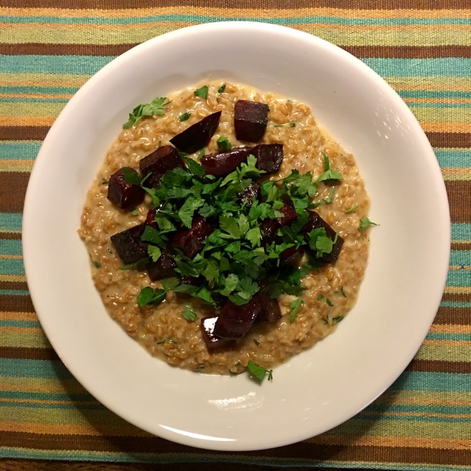 In den letzten Jahren habe ich eine Leidenschaft für rote Bete (oder in der Schweiz: Randen) entwickelt und mittlerweile einige interessante Rezepte hierzu ausprobiert. Ebenso bin ich ein grosser Fan von Risotto, „Gerstotto“ und nun wohl auch „Dinkelotto“…Dieses Dinkel-Risotto mit roter Bete ist schnell zubereitet und eignet sich hervorragend für ein wärmendes, gesundes, vegetarisches „daily dinner“… – ich bin mir nicht mehr ganz sicher, aber ich glaube dies ist ein Rezept der wunderbaren Seite NATURALLY ELLA vor Erin.