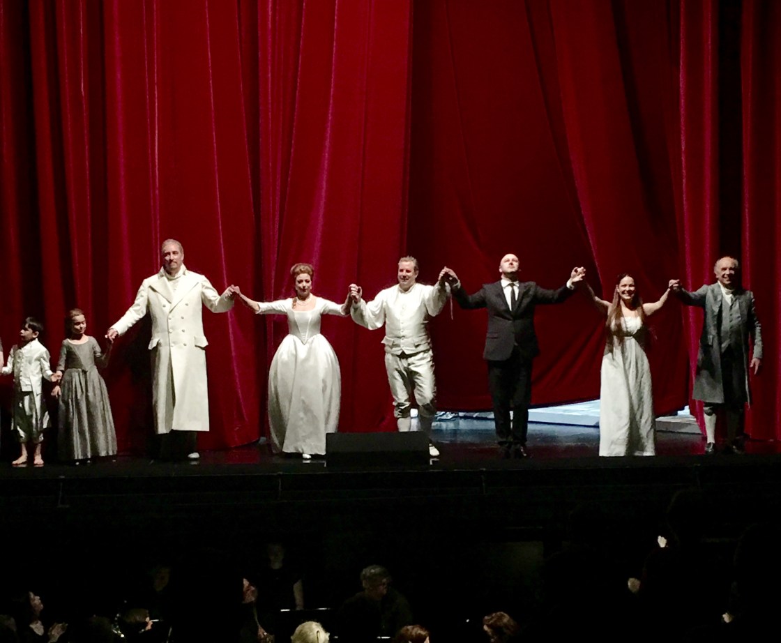 Eines der Frühwerke Verdis, in den Spielplänen und in der allgemeinen Beachtung etwas vernachlässigt (auch von mir), hat mich in der nun wiederaufgenommenen Zürcher Aufführung so sehr begeistert, ich bin immer noch ganz bewegt – eine feinfühlige sensible Inszenierung und musikalisch einfach grossartig…..Damiano Michieletto inszenierte dieses „Melodramma tragico in drei Akten“ (nach Schillers „Kabale und Liebe“) als Kammerspiel und hat hierfür in der aktuellen Besetzung grossartige Sänger-Darsteller zur Verfügung. Allgegenwärtig im drehbaren, flexiblen Bühnenbild von Paolo Fantin sind diese beiden Welten, die einfach nicht zueinander kommen können – es entstehen beeindruckende Bilder die den Atem anhalten lassen, etwa im 3. Akt, wenn das soeben eingenommene Gift zu wirken beginnt und in Form von Projektionen durch Fenster und Türen den Bühnenraum flutet und die Szene durchdringt. Dabei wirkt nie etwas aufgesetzt oder „über-inszeniert“, die Musik steht immer im Vordergrund und dennoch entsteht auch szenisch eine Sogwirkung, der man sich nicht entziehen kann. Zu verdanken ist dies natürlich einer grossartigen Sängerriege, allen voran der stimmlich immer noch bewundernswerte LEO NUCCI (Jahrgang 1942!!), ist es doch schon 12 Jahre her, seit ich ihn zuletzt auf der Bühne gesehen habe (ebenfalls Zürich, Posa in „Don Carlo“). Sein Vater Miller ist absolut glaubwürdig, will er doch nur das Beste für seine Tochter Luisa, sein herrlicher Bariton tönt immer noch warm und voll in allen Lagen – Bravo! Die georgische Sopranistin NINO MACHAIDZE – die mit der Luisa Miller ihr Hausdebüt in Zürich gibt – harmonisiert wunderbar zusammen mit dem lyrischen Tenor von MATTHEW POLENZANI. Seine Arie „Quando le sere al placido“ ist einer der Höhepunkte nach der Pause und ist vom Regisseur toll umgesetzt mit der zeitgleich sich schreibenden Briefprojektion von Luisas Brief an Wurm (widerlich schleimig und glaubwürdig gehasst von beiden Seiten: WENWEI ZHANG). JUDITH SCHMID (Federica) und MIKA KARES als Conte di Walter ergänzen diese wundervolle Besetzung mit ihren prachtvollen Stimmen. Ein etwas abgegriffener Begriff trifft hier zu und – so what – ich sag es jetzt einfach: es ist ein Sängerfest. Die Produktion ist spannend von Anbeginn und bleibt es auch bis zum tragischen Schluss. Die Partitur ist bei Dirigent RICCARDO FRIZZA (dessen Repertoire überwiegend Werke der italienischen Oper umfasst) in allerbesten Händen. Sonst finde ich Kinder und Doppelungen von Personen auf der Bühne eher nervig, hier macht es Sinn und es findet sich alles zu einem letzten beeindruckenden Bild zusammen. Was will man mehr? Vor 2 Tagen die tolle Neuproduktion von Shakespeares „Mass für Mass“ im Schauspielhaus und nun diese wunderbare Verdi-Wiederaufnahme: umjubelte Sängerinnen und Sänger und zu Recht „Standing Ovations“ – Begeisterung auf ganzer Ebene!