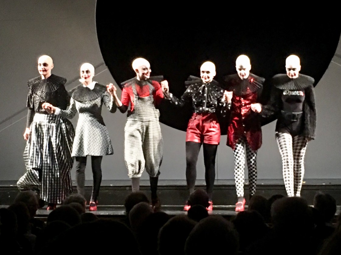 Die Bühne: Ein Fernrohr? Ein Blick durch die Linse? Von wem und worauf? Der Fokus öffnet sich und los geht es mit 2 Stunden in typischer Jelinek-Manier. Seit der Uraufführung in Hamburg läuft das Stück mittlerweile quer durch die Lande an den Sprechtheatern, sicherlich vor vollen Häusern. Das Thema lockt: Ihre persönliche Abrechnung mit Trump soll es sein (liest man), das verkauft sich heutzutage. Die Provokateurin, die Jelinek früher einmal war, ist sie allerdings längst nicht mehr. In ihrem neuen Stück „Am Königsweg“, dass in der Regie von Stefan Pucher in dieser Spielzeit am Schauspielhaus Zürich seine Schweizer Erstaufführung erlebte, collagiert Jelinek – etwas düster – alte und neue Machtstrukturen, stellt die Frage, wie es derzeit weltweit zum Erstarken rechter Tendenzen kommen kann, zitiert fleissig aus griechischer Mythologie und macht keinen Hehl aus ihrer Abneigung zu Herrn Trump und seiner persönlichen Immobilienblase. Elfriede Jelinek höchstselbst in sechsfacher Ausfertigung (tolle Kostüme und Puppen: Annabelle Witt) als blinde Seherin eröffnet den Reigen verschiedener Themenbereiche, welche die Autorin immer wieder beschäftigen, hauptsächlich dreht sich aber alles um Donald Trump, der omnipräsent ist, aber namentlich nie genannt wird, stattdessen sprechen alle vom „König“. Dies ist auch nicht nötig, denn Pucher zeigt den Aufstieg und die „Regentschaft“ von Trump als bibelhaftes Gleichnis, dass das Volk, also der demokratische Wähler, selbst verschuldet hat und die gefährlichen Seilschaften des Finanzwesens. Durch Puppenspiel entstehen Parallelwelten, Themen im Grossen und im Kleinen. In teils Comic-haften Bildern und versetzt mit amerikanischem Kulturgut (nämlich der Muppetsshow…) trägt die Inszenierung stellenweise dick auf, unterstützt durch die überlaute (aber sehr coole) Musik von Becky Lee Walters und Réka Csiszér, aber das passt ja auch irgendwie zur grellbunten Inszenierung des aktuellen amerikanischen Präsidenten nebst seiner ebenfalls überzeichneten Gattin Melania (meine Lieblingsszene: das Zombie-Horrorkabinett der amerikanischen Societyladies bei einer Vernissage). Barbara Ehnes hat hierfür einen düsteren Endzeit-Gerichtssaal gebaut in dem vieles verhandelt wird, gleichzeitig dient er als Projektsfläche für die manchmal etwas banalen Projektionen von Chris Kondek, machen aber stilistisch deutlich: das ist eine Inszenierung von Stefan Pucher. Die ausschliesslich weiblichen Rollen sind prächtig besetzt: Sandra Gerling, Henrike Johanna Jörissen, Isabelle Menke, Elisa Plüss, Mirjam Maertens und Julia Kreusch ziehen alle Register und so verstreichen die 2 Stunden Spieldauer angefüllt mit dem scheinbar nie endenden Jelinekschen Textschwall relativ schnell und teilweise höchst amüsant, grossartig archaisch und laut in den chorisch gesprochenen Passagen. Irgendwie wird man auch das Gefühl nicht los, dass dies ein sehr persönliches Stück ist, ein Abgesang von Jelinek auf sich selbst.