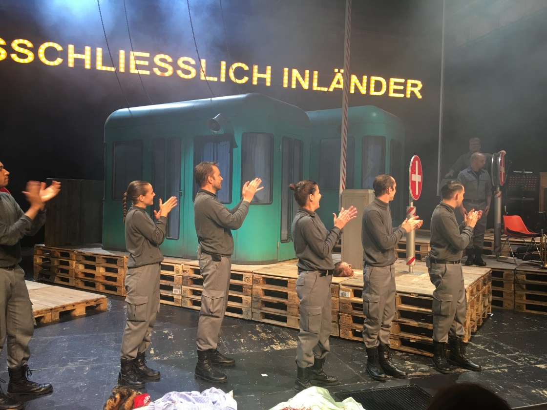 Nun, über diese ominösen Festspiele Zürich – diesjährig mit dem alles und nichts sagenden Titel „Schönheit und Wahnsinn“ – muss man nicht grossartig reden, denn wenn man ehrlich ist – diese Festspiele braucht kein Mensch und im Grunde auch keine der beteiligten Kulturinstitutionen. Auch im neuen 2-Jahres-Rhythmus ist dieses Event immer noch eine alberne Groteske, man feiert sich irgendwie selbst und gibt Geld aus, welches man anderweitig sinnvoller einsetzen könnte. Auf der Homepage des Schauspielhauses Zürich heisst es zwar: „Die Schönheit sowie der Wahnsinn der spezifischen Schweizer Kunst der Abgrenzung werden in diesem Projekt auf musikalische Weise zum unterhaltsamen Thema“, aber das ist eben auch nur eine weitere leere Worthülse. Nikolaus Habjans Kreisler-Abend hat mit dem Festspielthema „Schönheit und Wahnsinn“ nichts, aber auch gar nichts, zu tun. However – ein Besuch lohnt sich allemal aus vielerlei Gründen. Zum Einen ist es immer wieder schön, diese alten bösartigen und immer noch aktuellen Lieder zu hören, zum Anderen sind da diese herrlich schrägen Klappmaulpuppen des österreichischen Kunstpfeifers und Puppenspielers Nikolaus Habjan. Und es gibt einige wunderbare Momente. Habjan, der selbst spielt und Regie und Konzept des Abends verantwortet, hat sich von seinem Bühnenbildner Jakob Brossmann einen Grenzübergang bauen lassen, die Wärterhäusschen dienen als Spielfläche und Rückzugsort gleichzeitig. Die sonst nur mit Klavierbegleitung bekannten Kreisler-Songs klingen in den Arrangements der Formation Franui ziemlich neu, modern und sehr interessant. Die puppenspielenden Schauspieler *Innen verschwinden zumeist hinter den Puppen, manchmal treten sie aber auch in Dialog, das ergibt einige interessante Konstellationen. In dieser musikalischen Revue gibt es neben äusserst amüsanten Szenen (grossartig der ostdeutsche Grenzbeamte von Cornelius Körber mit seinem Stempel-Orgasmus), auch einige intensive musikalische Momente, etwa wenn Miriam Maertens den Song „Der Witz“ zum besten gibt oder bei Michael Neuenschwanders kabarettistischer und titelgebender Einlage „Ausschliesslich Inländer“, hervorstechend an diesem Abend ist sicherlich der grossartige Benito Bause mit seiner aussergewöhnlich schönen Singstimme. Jedem/r einzelnen der Schauspieler*Innen ist anzumerken, wie intensiv, sie sich mit dem Puppenspiel beschäftigt haben – aber hierfür hatten sie auch einen grossartigen Lehrmeister, denn beobachtet man Nikolaus Habjan und seine alte verschrobene Lady, die von ihm bespielt wird, so sieht man, mit welch grossem Talent und welcher Leidenschaft er dies tut. Die beiden Körper werden eins und harmonisieren vollends. Für meinen Geschmack hätte der Abend gerne noch etwas böser, beissender, sarkastischer sein dürfen, manche der Nummern wirkten ein wenig weichgespült. Dennoch ein wunderbarer und äusserst kurzweiliger Abend.