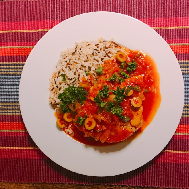 Ein weiteres Fischrezept aus dem mexikanischen Kochbuch „Fiesta“ von Tanja Dusy ist „Pescado a la Veracruzana“, relativ einfach zuzubereiten, sehr lecker und mit den Kapern, Oliven und Jalapeños in der tomatigen Sauce geschmacklich eine Wucht….