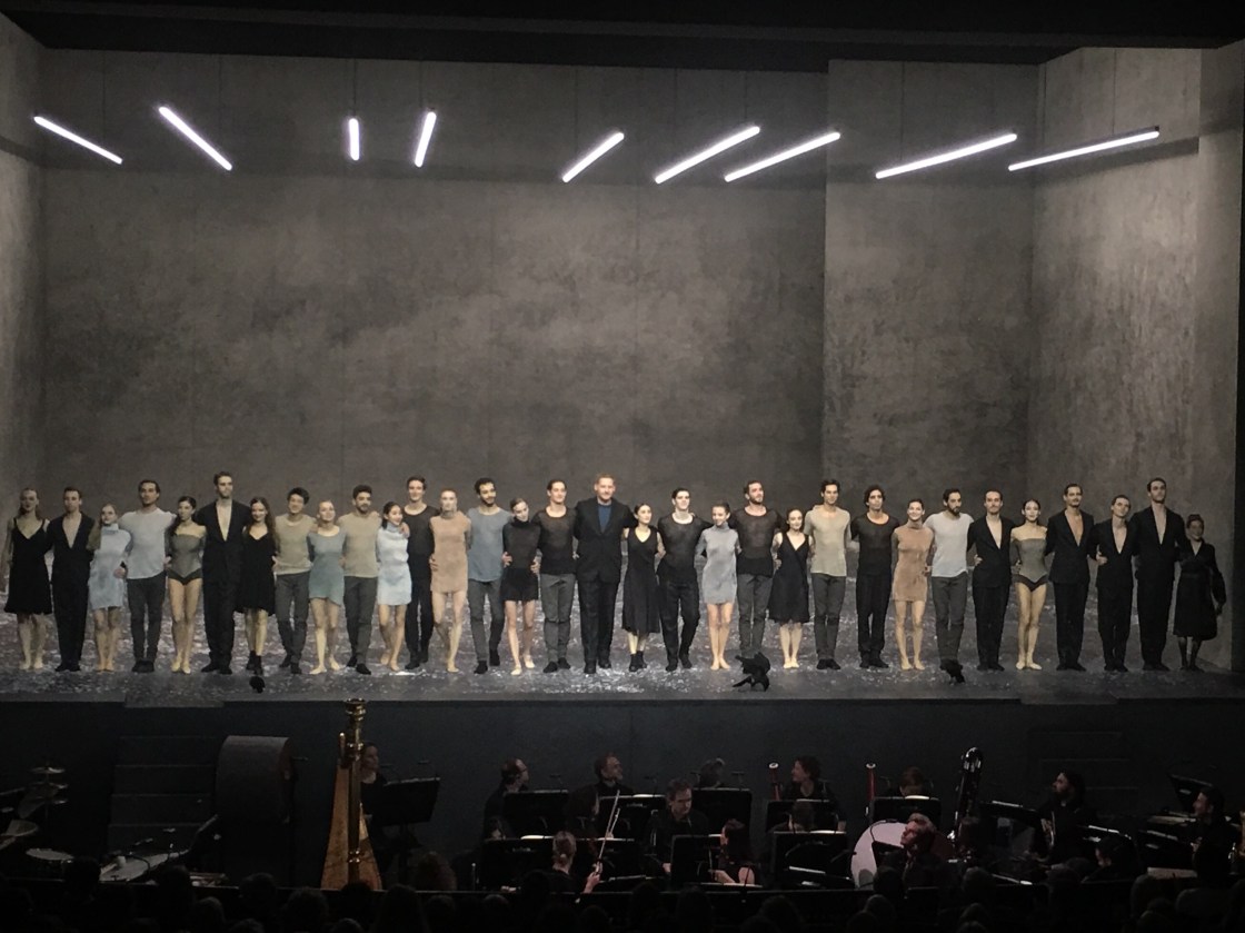 Gesamthaft zeigt Spuck in dieser Umsetzung viele menschliche Gefühlsregungen und Emotionen: Einsamkeit, Entfremdung, Traurigkeit, unendliche Melancholie, Sehnsucht in teils berückend schönen Bildern. Die Bilder, Choreografien, Bewegungsabläufe bleiben haften und prägen sich ein, haben eine Schönheit, die im Einklang mit der Musik ein abendfüllendes, fast schon gemäldeartiges Gesamtkunstwerk erschaffen. Hans Zenders Bearbeitung des Zyklus legt die Irritationen und Widersprüche der Komposition Schuberts und der Texte Wilhelm Müllers bloss und verstärkt sie, ergänzt mit verschiedenen Vor- und Zwischenspielen und im Graben betörend poetisch interpretiert von Thomas Erlank, getragen von der Philharmonia Zürich (am Pult: Emilio Pomàrico). Hans Zenders Version ist sehr interessant arrangiert und instrumentiert und bietet spannende neue Klangeindrücke dieses „Klassikers im Lied-Repertoire“. Spuck findet die entsprechenden Bilder dazu. Die Müdigkeit des Wanderers, die Eiseskälte wird spür- und erlebbar für den Zuschauer, der nicht nur an den äusseren Begebenheiten teilnimmt, sondern eben auch an dieser teilweise verstörenden Reise ins Innenleben. Der allzeit präsente Tod und die Sehnsucht danach ist allgegenwärtig und manifestiert sich im endlos drehenden Musikkasten des „Leiermanns“ zum Abschluss des Zyklus – einer der stärksten Momente – als Duett der grossartigen Yen Han zusammen mit Filipe Portugal. Haften bleibt das gemäldeartige starke Bild des Ensembles, ihrer Kleidung entblösst mit den vielen schwarzen Raben und der langsam auf seinem Weg weiterwandernde Sänger, bevor sich der Vorhang langsam wieder schliesst. Bravi!