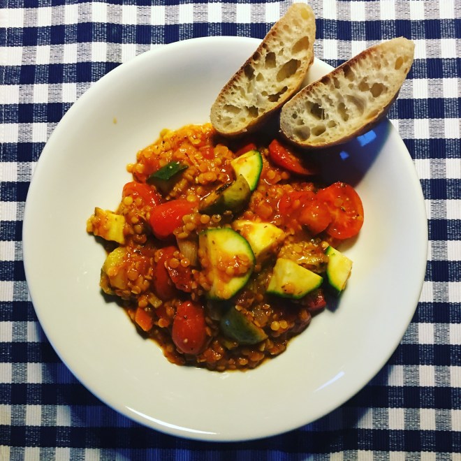 Der Frühling naht und mit ihm die leichte Küche – can’t wait – also noch schnell einen eher winterlich angehauchten Gemüse-Schmortopf mit Linsen zubereiten, wobei die grosszügig verwendeten Kräuter der Provence eher nach Sommer schmecken…