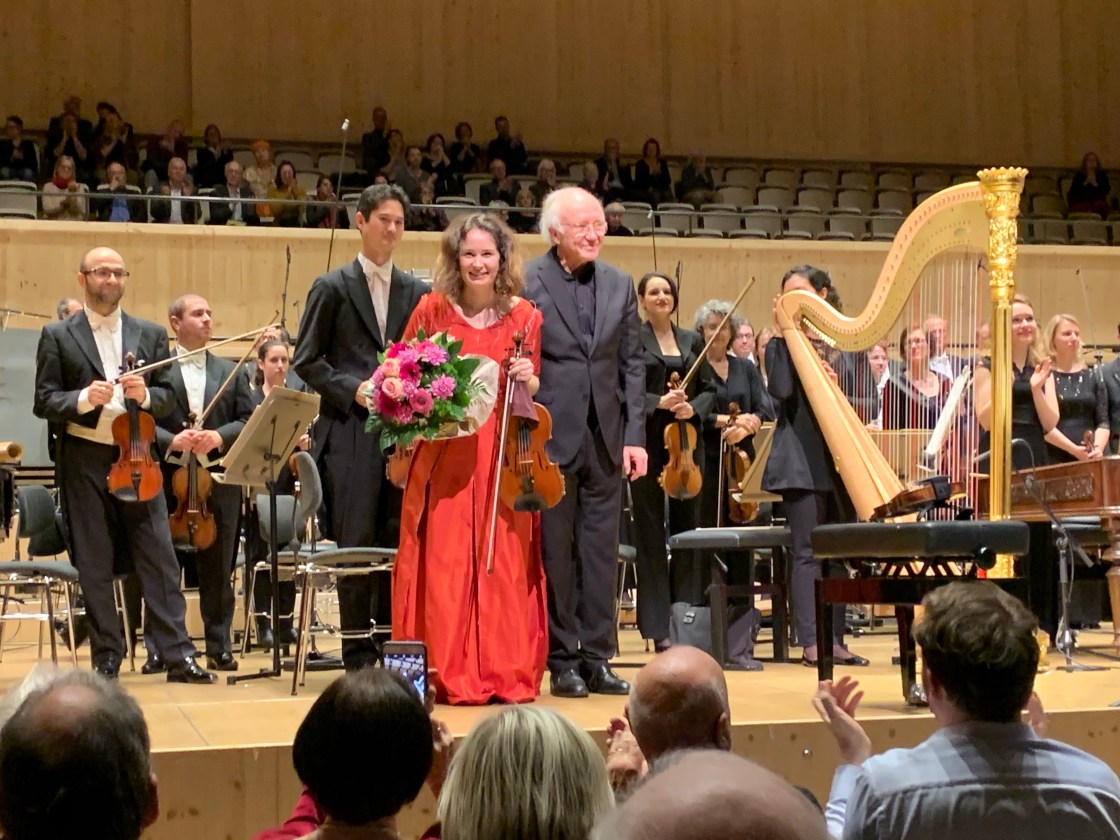 Kopatchinskaja gibt nach dem Violinkonzert noch ein entzückendes Encore mit einem kleinen, aber äusserst feinen Stück von Holliger. Zur Einführung dazu erzählt sie, dass Heinz Holziger ihr das dereinst per Post zusandte. Man merkt die Verbundenheit der Beiden. Und Kopatchinskaja brennt auch bei dieser kleinen Zugabe und zeigt einmal mehr ihre grossartige Leidenschaft für die Musik und ihr Instrument. Famos! Es folgt „Romancendres“, ein fast schon deprimierendes Werk, dem ein Akt der Zerstörung zugrunde liegt. Clara Schumann verbrannte 1893 unveröffentlichte Manuskripte ihres Mannes, die dieser 40 Jahre zuvor komponiert hatte. Der Name des Werkes setzt sich aus „Romances“ und „Cendres“ zusammen – „Romanzen/Asche“. Eine Hommage an Robert Schumann und seine der Nachwelt somit vorenthaltenen Werke, gespielt und interpretiert von der Cellistin Anita Leuzinger (sichtbar nervös vor dem ersten Ton) und Anton Kernjak (Klavier). Interessante rhythmische Sequenzen wechseln sich ab mit melancholischen, fast schon traurigen Momenten und empfindsamen Phrasen. Nach der Pause dann Bernd Alois Zimmermanns opulentes Werk von 1952. Holliger entlockt auch hier der riesigen Orchesterbesetzung immense Klangfarben und schafft einen voluminösen Schlusspunkt dieses langen und sehr intensiven Konzertes. Nach dem Vorstellungsbesuch von Holligers Oper „Schneewittchen“ 2014 in Basel, hätte ich nicht gedacht, mich jemals wieder mit seiner Musik anfreunden zu können, aber dank der UA von „Lunea“ 2018 am Opernhaus Zürich und vor allem dieses Konzertes in der Tonhalle MAAG, bin ich gänzlich versöhnt…