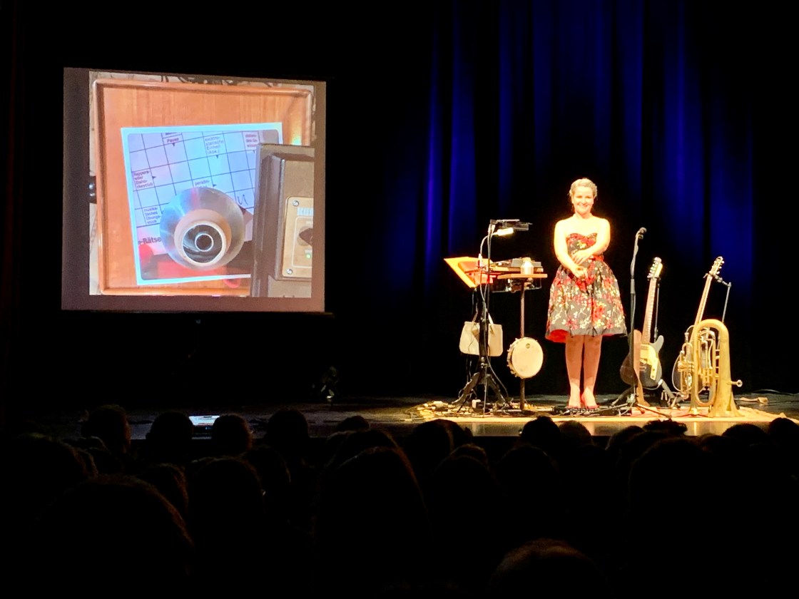 Das Frölein Da Capo heisst gut bürgerlich Irene Brügger, wohnt in Willisau und ist dem breiten Schweizer SRF-Publikum sicherlich noch sehr gut in Erinnerung als satirisch-musikalischer Sidekick von Giacobbo/Müller. Aktuell tourt das Frölein – nebst ihrem eigenem Programm – noch mit dem wunderbaren Beatles-Abend „Sgt. Pepper“ der Formation „Second-Hand-Orchestra“ (zusammen mit Roman Riklin, Daniel Schaub und Adrian Stern) durch die Lande. Das klug-konzipierte Ein-Frau-Orchester agiert mittels eines Loopgeräts und grossartig komponierten und arrangierten Songs und bildet den weiblich-ländlichen Gegenpol zum bedauerlicherweise nicht mehr existierenden männlich-städtischen „Heinz de Specht“-Trio. Der umwerfende Charme und die fröhliche Musikalität des Fröleins nimmt einen von der ersten Minute der köstlichen Ouvertüre bis zum verklingenden Ton der Schluss-Fermate gefangen. Dazwischen gibt es kleine und grosse Episoden: Humoriges, Böses, Umwerfendes, Satirisches, Witzig-Trauriges aus einem bis ins kleinste Detail und bis aufs Schärfste beobachteten Frauenlebens. Es gibt Familiengeschichten rund um die eher ungeliebte Cousine und natürlich kommentierten Schweizer Alltag vom 1. August bis hin zum traumatisierenden Blockflötenunterricht in jungen Jahren. Unterstützt wird das Programm durch einen flinken Zeichenstift und multiplen Instrumenteneinsätzen (von Blech bis Tasten), rhythmisch-virtuos im Loop gefangen. Beeindruckend ist das teils rasend-schnelle Multitasking, die federnde Leichtigkeit und – um das nochmals zu erwähnen – der umwerfende zauberhafte Charme des Fröleins. Ja, so hat das Jahr gut angefangen! Prost! Aufs Frölein Da Capo!
