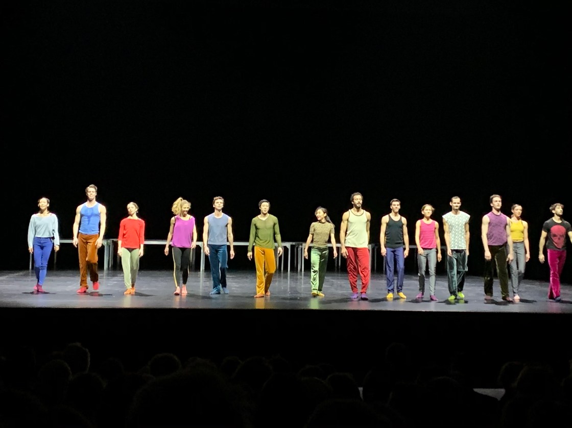 Höhepunkt und grandioser Schluss dieses wundervollen Abends dann das temporeiche „One Flat Thing, reproduced“ aus dem Jahr 2000 (Frankfurt Ballett). Was für eine atemberaubende Choreografie, was für eine grossartige Leistung und Koordination des Ensembles – scheinbares Chaos auf, um, unter, neben 20 perfekt angeordneten Tischen, die bereits beim Auftrittslärm – wenn sie von hinten aus der Dunkelheit nach vorne bis an die Rampe gezogen und angeordnet werden – von einer furiosen Arbeit künden. Alles pulsiert, verliert und sammelt sich, dazwischen schnelle Blicke und zugerufene Kommandos – ein bis ins kleinste Detail organisiertes Chaos. Als Zuschauer starrt man gebannt und atemlos auf dieses ausgeklügelte Spektakel, bevor am Ende die Tische von den 14 Tänzer*innen wieder an den Ursprungsort gezogen werden und der Vorhang sich senkt. Was für eine Energie! Was für ein Tempo! Langanhaltender Applaus für diesen furiosen Abend, den man unbedingt sehen muss! Grossartig!
