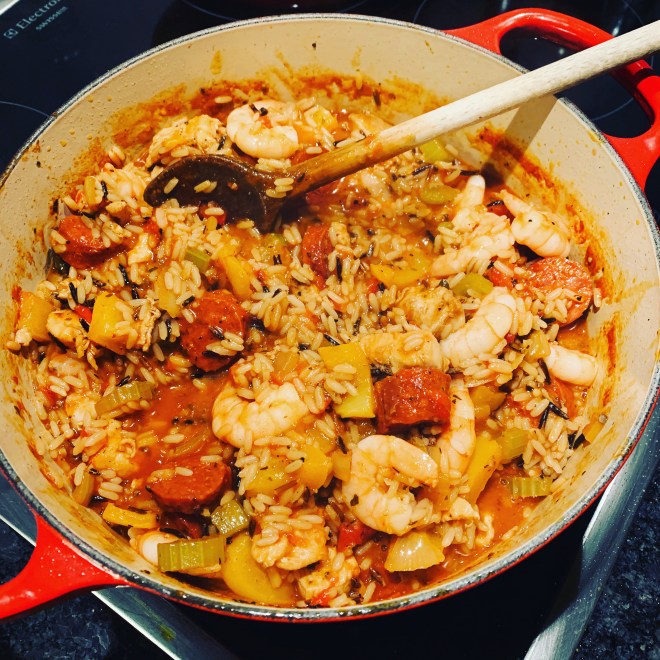 In der kreolischen bzw. Cajun-Küche finden sich unzählige Jambalaya-Rezepte, sie unterscheiden sich häufig nur minimal und im wesentlichen durch ausgetauschte Fleisch bzw. Fischeinlagen. Eines haben sie jedoch gemeinsam – sie sind alle äusserst geschmackvoll, sehr würzig und eine leckere und flink zubereitete Mahlzeit, egal ob zu Mittag oder am Abend…