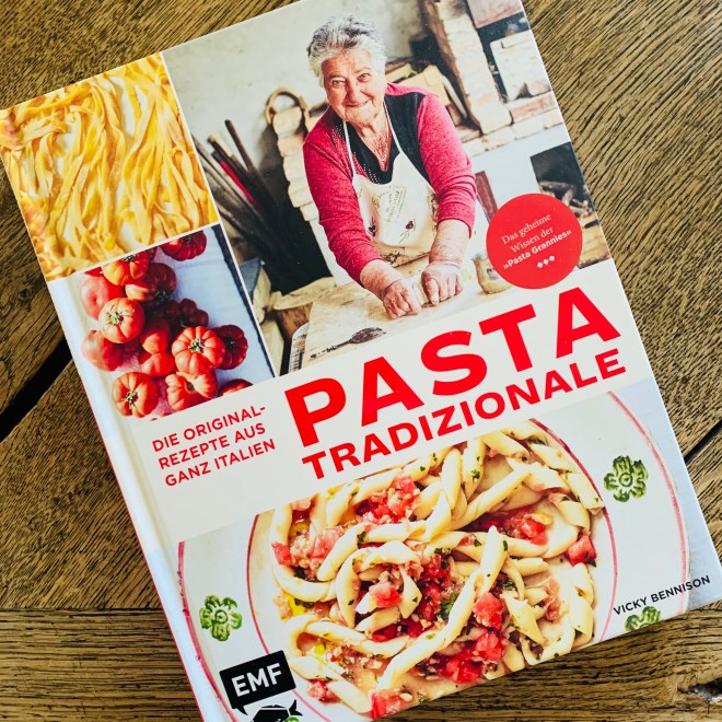 Fernab von leichter und kohlehydratfreier Küche zelebriert das Kochbuch „Pasta Tradizionale“ von Vicky Bennison, mit dem im Original viel schöneren Titel „Pasta Grannies“, die grosse Vielfalt unterschiedlichster Pastagerichte aus verschiedenen Regionen Italiens. Jede Granny hat natürlich ihr eigenes Geheimrezept an Nudelteig oder der ganz speziellen Sosse.
