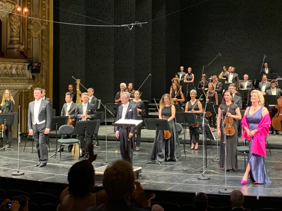 Der Abend war bereits vor Corona geplant und hätte Anfang Juni stattfinden sollen und bietet ein sehr zuckrig-süsses Operettenprogramm, ein Best of Franz Lehár, Johann Strauss, Emmerich Kálmán und sogar eine Nummer von Robert Stolz („Du sollst der Kaiser meiner Seele“ aus „Der Favorit“). Die Philharmonia Zürich unter GMD FABIO LUISI spielt voller Freude und Schmiss (herrlich die schnelle Polka „Unter Donner und Blitz“ von Johan Strauss im zweiten Teil des Abends). Luisi zaubert unvermutet herrliche walzerseelige Operettenklänge, das Programm hätte insgesamt etwas bunter sein dürfen, die zuckerig-pappsüsse Nummernauswahl ist irgendwann dann doch hart an der Grenze des Erträglichen, als gäbe es im Repertoire nichts anderes als Csárdás und Liebesqualen – Operette hat doch so viel mehr zu bieten…! Ein herausragender Piotr Beczala lässt das schnell vergessen, noch im Ohr seinen hervorragenden Bayreuther „Lohengrin“ 2018, ist man ganz hingerissen von seiner stimmlichen Präsenz im oft unterschätzten Operettenkarussel. Alleine schon wegen seines Auftaktes zum zweiten Teil des Abends mit „Freunde, das Leben ist lebenswert“ (aus „Giuditta“) lohnt sich dieser Vorstellungsbesuch. Beczala ist einer der wenigen Sänger, für dessen wundervolle Stimme man die abgedroschene Phrase des tenoralen Schmelzes endlich einmal benutzen kann, selten habe ich „Dein ist mein ganzes Herz“ (aus „Land des Lächelns“) oder „Gern hab ich die Frau’n geküsst“ (aus „Paganini“) so wundervoll gesungen gehört, kein Wunder ist nach jeder Nummer Beczalas das Publikum komplett aus dem Häuschen, die Nummern von Camilla Nylund bleiben dabei leider etwas auf der Strecke, für meinen Geschmack ist sie auch etwas unglaubwürdig als Gräfin Mariza, eher nimmt man ihr eine Hanna Glawari ab, am stärksten überzeugt sie mit dem wunderbar sanften „Warum hast Du mich wachgeküsst“ aus Lehárs „Friederike“. Grosser Abschluss des Abends dann mit „Mein Freund Vernunft / Wie eine Rosenknospe“ und als Zugabe – wie nicht anders zu erwarten – das wohl obligatorische „Lippen schweigen..“ aus Lehárs „Die lustige Witwe“. Das durch Corona zwangsläufig ausgedünnte Parkett ist aus dem Häuschen und man hat das Gefühl, an diesem Abend das Operetten-Traumpaar schlechthin gehört zu haben: Camilla Nylund und Piotr Beczala – Wunderbar!