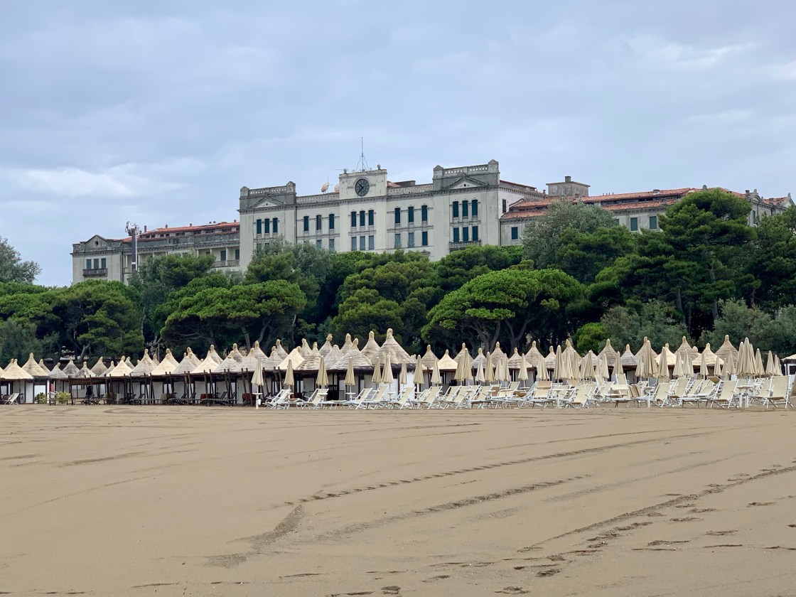 Im „Grand Hotel des Bains“ residierte hier 1911 Thomas Mann und wurde von diesem Schauplatz für seine Novelle „Der Tod in Venedig“ inspiriert. Auch die Visconti-Verfilmung von 1971 wurde hier gedreht. Heute steht man vor verschlossenen Türen, sieht aber tatsächlich Bautätigkeiten hinter den verrosteten Zäunen. Früher wurde das Hotel häufig von Filmstars der Filmfestspiele von Venedig frequentiert. Eine Wiederbelebung scheint wohl in Planung, beim derzeitigen Zustand des Hotels und seinem weitläufigen Garten ist jedoch ein potenter Investor nötig. Am weitläufigen Strand kann man förmlich Gustav Aschenbach im Strandkorb sitzen sehen, wie er lüstern in der Sommerhitze den Knaben Tadzio und seine Familie beobachtet. Die biographischen Bezüge des Romans zum Leben Thomas Manns sind vielfältig und es lohnt sich, sich etwas intensiver damit zu beschäftigen. Oder man liest einfach mal wieder diese Novelle. Thomas Mann passt immer. Wenn man Zeit und Muse hat sowieso.