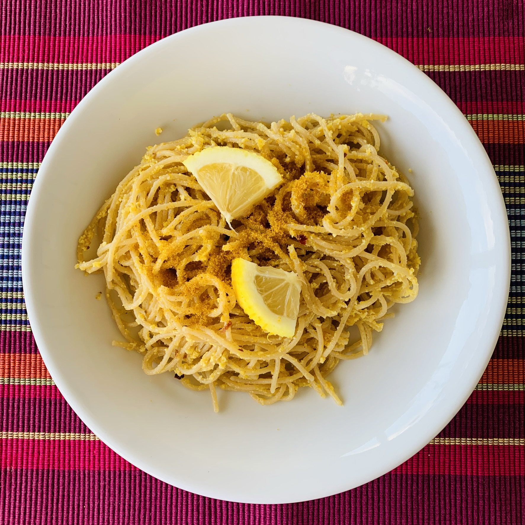 Dazu gibt es dann noch einige Adressen und Tipps am Ende sowie ein umfangreiches Register. Die im Buch befindlichen Rezepte sind breitgefächert und reichen von einfachen Bauerngerichten (wie einer schönen Ribollita) bis hin zur allseits beliebten Torta della Nonna. Das erste von uns ausprobierte Gericht war ein wundervolles einfach gehaltenes Pastagericht: Spaghetti con Bottarga di Orbetello, Limone e Uova (Spaghetti mit Meeräschenrogen, Zitrone und gestockten Eiern), quasi eine fischige Variante des Klassikers „Carbonara“.