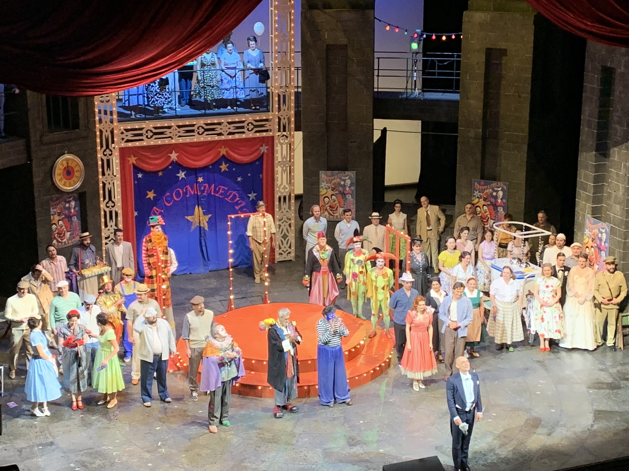 Manchmal braucht man das einfach – grosse Gefühle, unbändige Leidenschaft und wenn dazu noch grosse Stimmen zu hören sind: was will man mehr? Der Sogwirkung dieser beiden veristischen Kurzopern kann man sich auch nicht entziehen. Die eher konventionelle, aber absolut zeitlose und für die Wiederaufnahme sehr gut geprobte Inszenierung von GRISCHA ASAGAROFF (von 2009) bietet alles, was es braucht – hier muss man wirklich explizit erwähnen, dass der Regisseur selbst nochmals drei Wochen mit der neuen Besetzung intensiv geprobt und die Regie auf den neuen Cast angepasst hat. Zwar gab es mehrere Besetzungswechsel in der Spielserie aufgrund von positiven Corona-Testungen – das ist wohl aktuell der Alltag – die Qualität hatte jedoch nicht zu leiden. Nach einer mindblowing „Cavalleria Rusticana“, die den Doppelabend eröffnete, war es natürlich für „Pagliacci“ nicht so einfach, an diese Fallhöhe anzuknöpfen. Kein Wunder: ELĪNA GARANČA begeistert als Santuzza mit ihrem ebenbürtigen Spielpartner MARCELO ALVAREZ (Turiddu), perfekt nimmt man ihr diese Rolle einer von der Dorfgemeinschaft Ausgegrenzten ab, voller Leidenschaft und Intensität nimmt Garanča gefangen und rührt den Zuschauer bei ihrem Gebet fast zu Tränen – Sternstunde!!! LUCIO GALLO (Alfio) und SVETLINA STOYANOVA (Lola) singen und spielen auf gleichem Level, besonders erwähnenswert jedoch die wunderbare IRÈNE FRIEDLY als Mamma Lucia, wie kalt und abweisend sie zu Beginn Santuzza wegweist, um sie dann doch zuletzt ins Herz zu schliessen, das ist glaubwürdig und ergreifend. Nach Ertönen des Rufes, dass Turiddu getötet wurde, sind beide Frauen vereint, es bleibt das ergreifende Schlussbild mit Santuzza samt Witwenschleier, bevor sich der erlösende tosende Applaus erhebt. Grossartig!