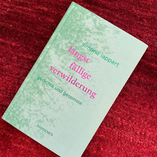 Nach den Romanen „Wurfschatten“ und „Der Sprung“ (mit dem sie 2019 für den Schweizer Buchpreis nominiert war) ist bei Diogenes nun der sehr schön gestaltete Lyrikband „längst fällige verwilderung“ erschienen. Man nimmt ihn zur Hand, blättert darin, bleibt sofort hängen und mag ihn gar nicht mehr weg legen. Man merkt sofort – das ist kein Schnellschuss, hier wurde lange gezögert. Und mit sich gehadert. Es hat sich gelohnt. Denn Simone Lapperts lyrische Gedanken sind fein, klug, zerbrechlich und äusserst sensibel. Und doch hat man bei einigen Seiten das Gefühl, dass sie spontan niedergeschrieben und unverändert gedruckt wurden. Unwiderruflich. Für die Ewigkeit. Es ist diese Klarheit, die mich als Leser und Lyrikfreund so begeistert, eins meiner Liebsten ist ein einfacher Zweizeiler: „auf dem parkplatz retten zwei menschen eine schnecke, immerhin das.“ – ist das nicht wunderbar? Diese vordergründige Einfachheit, die sich schnell als mehr entpuppt und manche Sätze dann fast schon alterskluge Lebensweisheiten sind und sich lesen lassen, als hätte es sie schon immer gegeben.