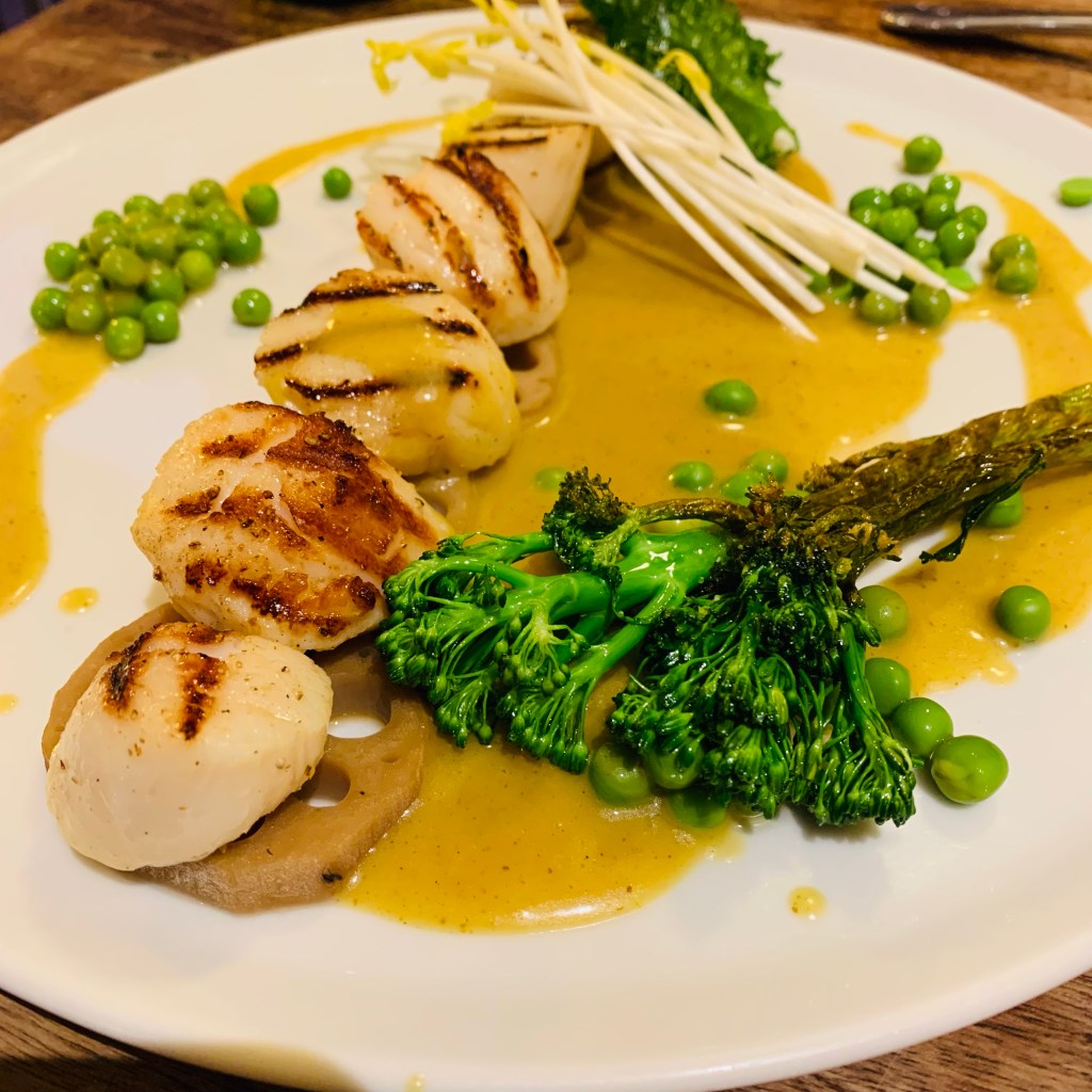 Ein Dessert ist uns – nach den vielen Gängen – bedauerlicherweise nicht mehr möglich. Aber wir sind uns sehr schnell einig, dies ist eines der besten Restaurants der Reise, wenn nicht sogar das Beste! Das Menchi_Katsu mit Tommé gefüllt, der einem beim Aufschneiden üppig entgegen quillt oder die Jakobsmuscheln in der Wermut-Curry-Reduktion – egal welches Gericht, es macht uns glücklich. So soll es sein! Als Aperitif ein schöner Crémant aus der Gegend und danach eine kleine Weinauswahl auf Empfehlung des sehr angenehmen und kompetenten Services. Dieses Restaurant ist eine wirklich Empfehlung und sollte uns der Weg erneut durch Beaune führen, werden wir unbedingt rechtzeitig reservieren und erneut hier aufschlagen.