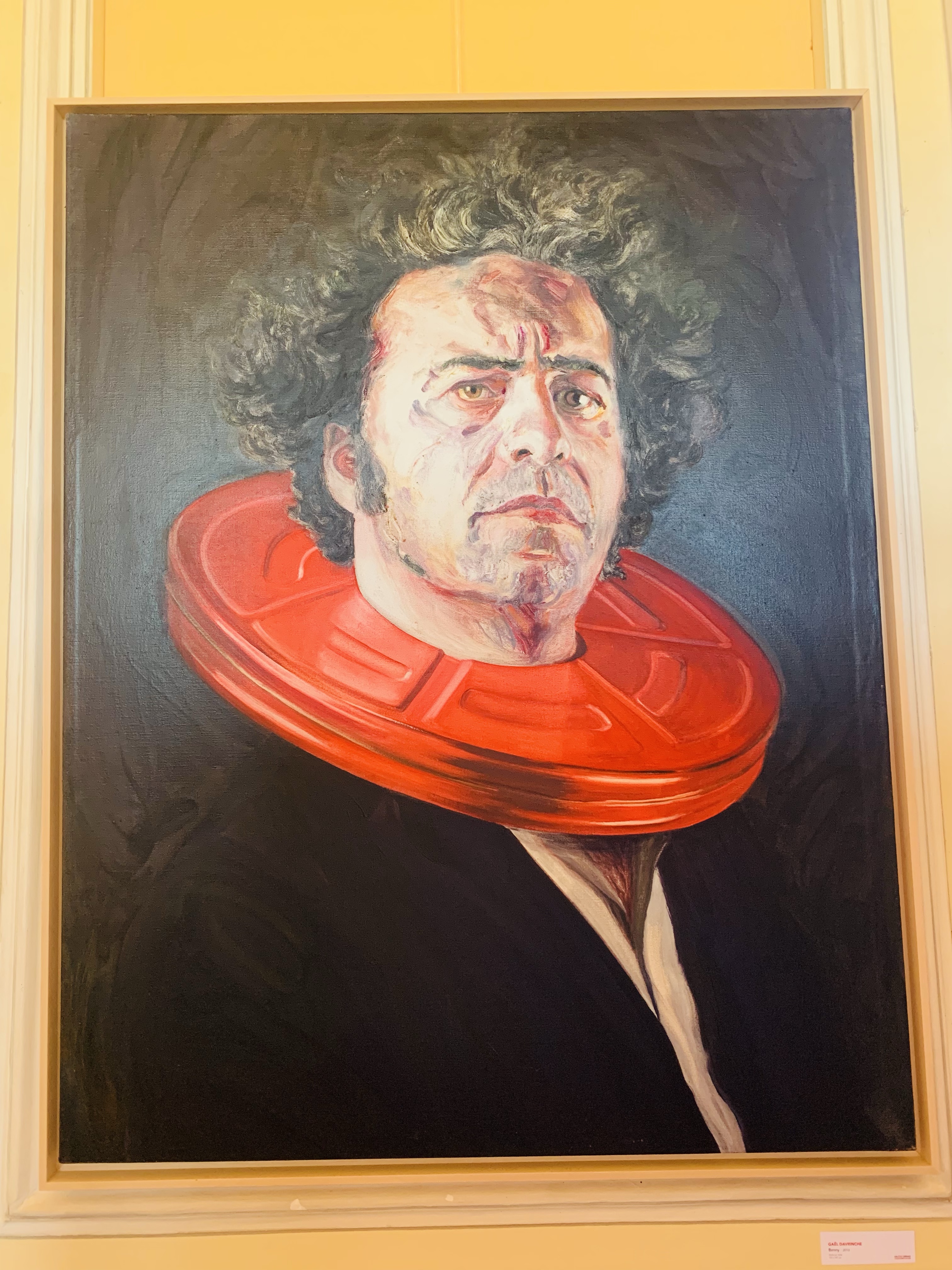 Der Franzose Gaël Davrinche (1971) lebt und arbeitet in Montreuil. Seit seinem Abschluss an der Ecole nationale supérieure des Beaux-Arts de Paris im Jahr 2000 arbeitet er an seiner internationalen künstlerische Karriere mit vielen Ausstellungen sowohl in Europa (Frankreich, Italien, Deutschland, Belgien, Großbritannien, Schweiz usw.) als auch in Asien (Singapur, China, Hongkong, Südkorea). Das produktive Werk von Gaël Davrinche, das sich in Form von Gemälden, Zeichnungen, Skulpturen oder auch Drucken präsentiert, greift vor allem die klassischen Genres des Porträts und des Stilllebens in einem plastischen Dialog zwischen der Tradition und ihrer vollständigen Dekonstruktion auf. Davrinche wühlt und gräbt in den Werken berühmter Kollegen der Kunstgeschichte und zitiert und karikiert in eigenen Gemäldeserien, wie etwa in „Les Revisités“ humorvoll Meisterwerke der europäischen Kunst. Die in Carrouge ausgestellten Porträts haben Witz und Humor, sind farbenprächtig und schlendert man weiter durch die nachfolgenden Säle, so entdeckt man noch den ein oder anderen Gavrinche über einem Kamin oder in einer Salon-Ecke. Zur Ausstellung erschien in der Edition Lord Byron ein Ausstellungskatalog, der jedoch leider bereits vergriffen ist.