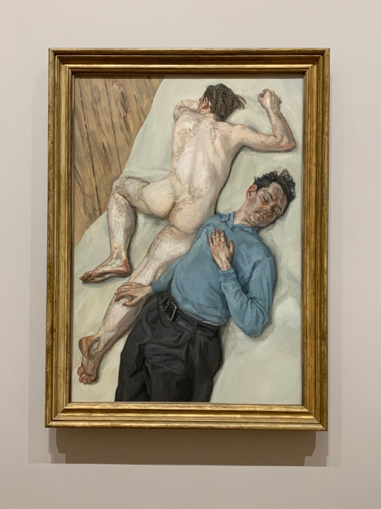 Lucian Freud (1922 – 2011) ist wohl einer der besten figurativen Maler Grossbritanniens – die Ausstellung umspannt sein Lebenswerk und zeigt, wie sich seine Malerei in den 70 Jahren seines Schaffens verändert hat – von seinen frühen und sehr intimen Werken bis hin zu seinen bekannten, großformatigen Leinwänden mit Personen des öffentlichen Lebens und seinen monumentalen Nacktporträts. Daneben sind auch sehr private Studien von Freunden, seinen Kindern und Familienmitgliedern zu sehen im privaten Umfeld, aber auch in seinem Atelier. Es sind sehr intime Momente mit einer unglaublichen Sogwirkung. Aus seinen zahlreichen Beziehungen entstanden viele Kinder, die Presse spekuliert bis heute über deren Anzahl, all das trägt natürlich auch zum Mythos Lucian Freud bei, zweifelsohne ist er jedoch einer der ganz Grossen und es ist immer wieder wunderbar seine ausdrucksstarken Werke zu betrachten und beeindruckend, mit welcher Schonungslosigkeit er auch immer wieder sich selbst porträtiert hat.