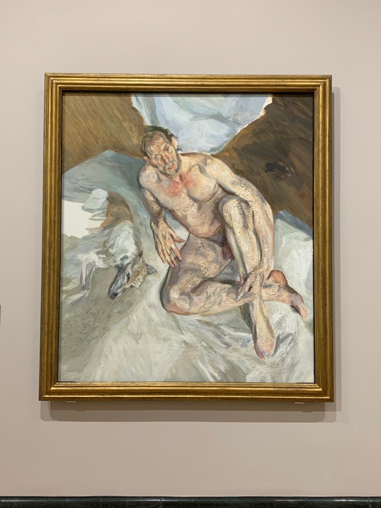 Zu sehen ist natürlich auch eines seiner bekanntesten Werke: Das Porträt Königin Elisabeths II. von 2001, auf ihm ist die Königin im Alter von 75 Jahren zu sehen, das Gemälde rief damals in der Boulevard-Presse grosse Empörung hervor, die Queen selbst hat sich nie zu einem der vielen Porträts von ihr geäussert oder diese kommentiert und es sind dies einige. Und wenn man schon mal in der National Gallery unterwegs ist, kann man im Anschluss an diese tolle Schau noch in vielerlei anderen Epochen und Sälen herumwandern und -wandeln. Auch wenn die Lucian Freud Ausstellung nicht wenig Eintritt kostet, die ständigen Sammlungen sind in London dafür immer gratis. Zur Ausstellung ist ein sehr schöner Katalog erschienen.