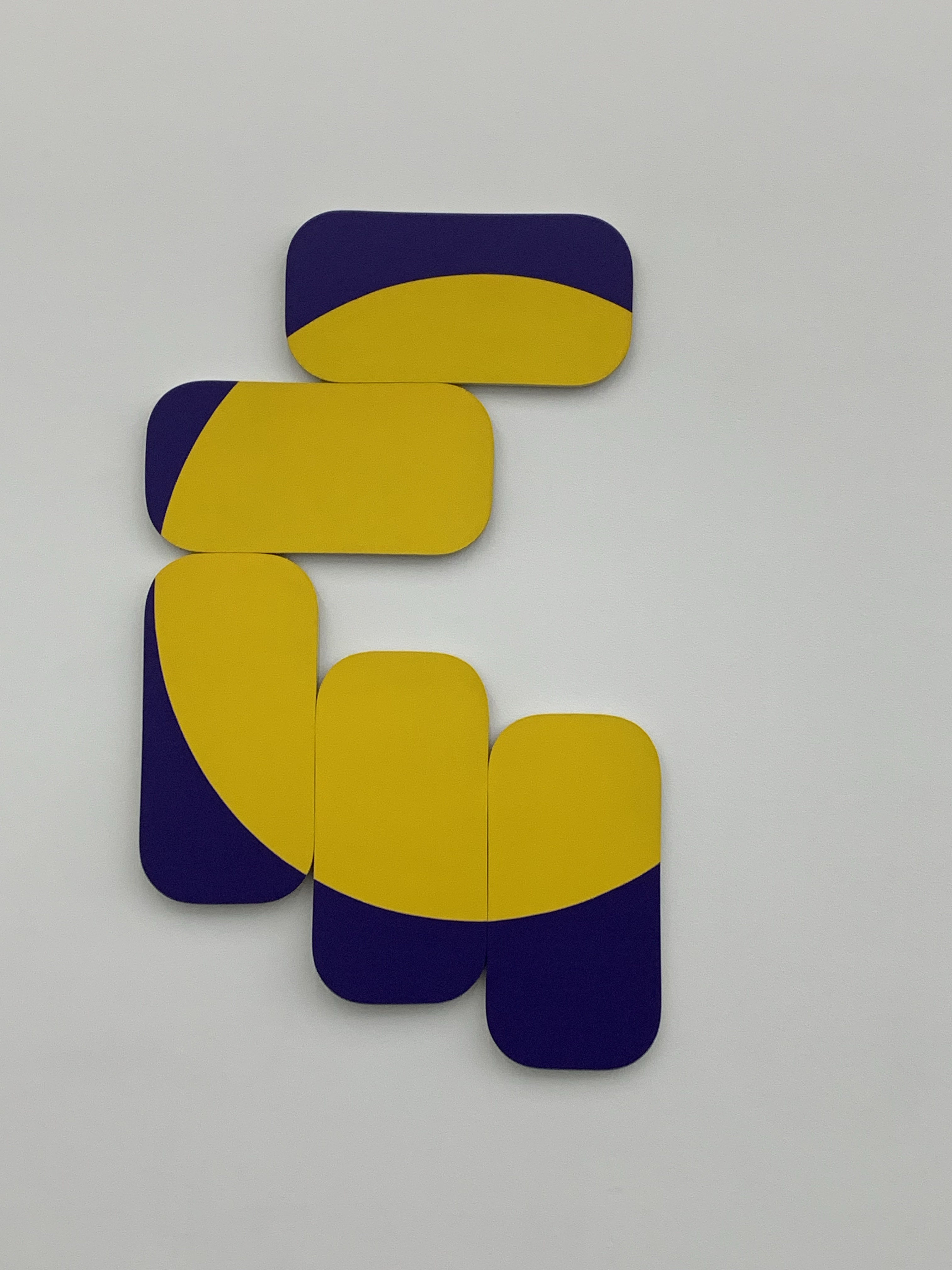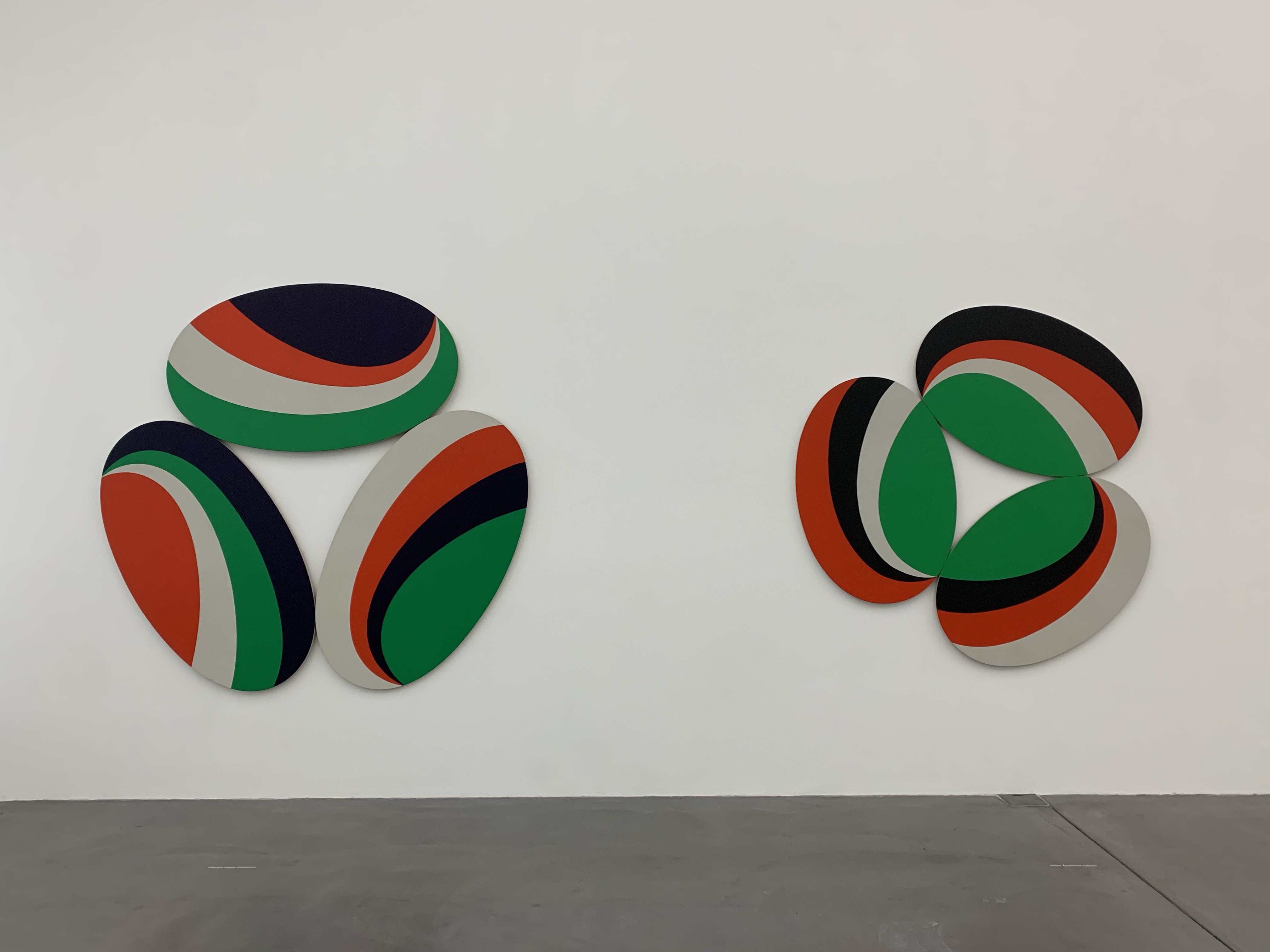 Wenn man geometrische Abstraktion mag, ist man hier richtig. Interessante Farbkombinationen (mein Favorit: Constallation Happy Day von 1971 in schwarz, rot, grün, weiss, gleich in der grossen Eingangshalle) und viel geometrische Formen sind zu sehen, viele runde und ovale Bildträger, aber auch zusammengesetzte Dreiecke, Quadrate und Rechtecke.