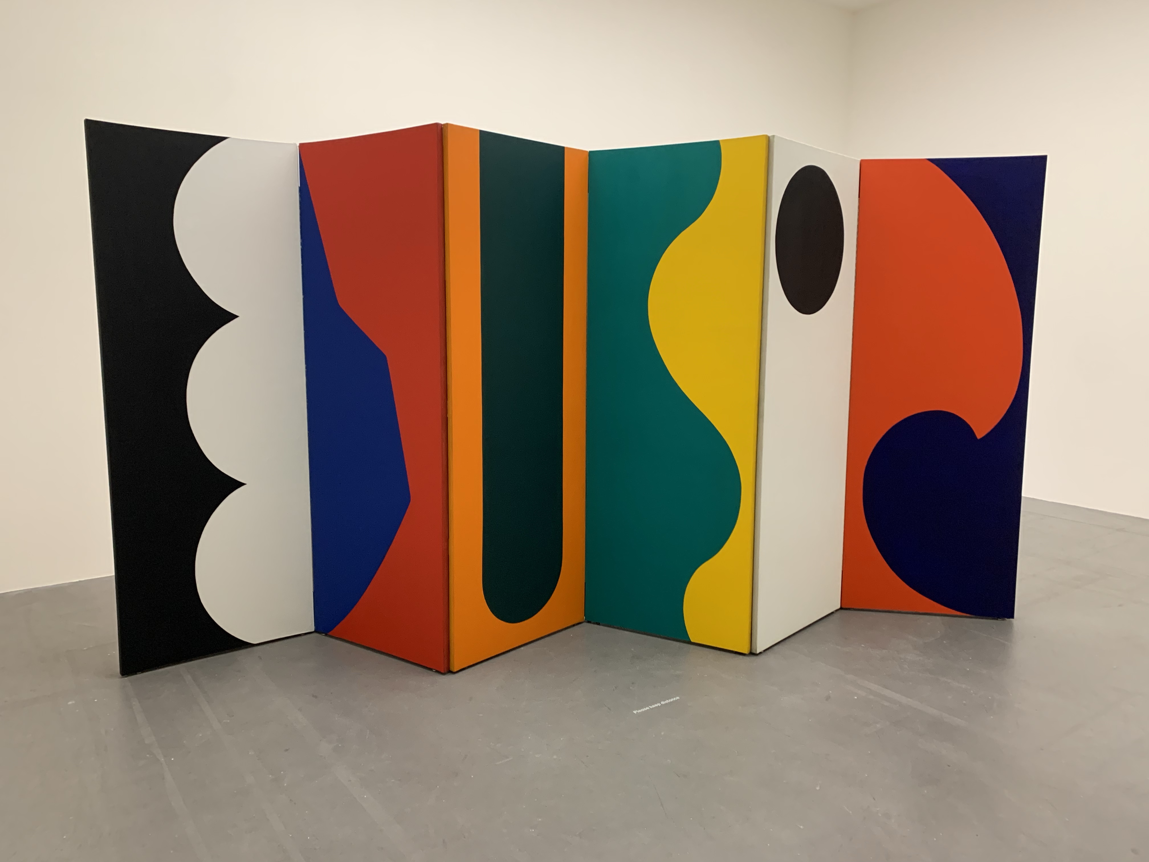 Auf vier Stockwerken sind Werke von fast allen Schaffensphasen zu sehen, von Mitte der 40er Jahre bis in die späten 80er, weitestgehend in chronologischer Reihenfolge präsentiert. Als Auftakt beginnt man am besten im 4. Stock mit Fritz Glarners „Rockefeller Dining Room“ – die Arbeiten beider Künstler haben ihren eindeutigen Bezug zu Mondrian. Wer Farbe und Geometrie liebt, wird an den vielen ausgestellten Werken von Leon Polk Smith grosse Freude haben.