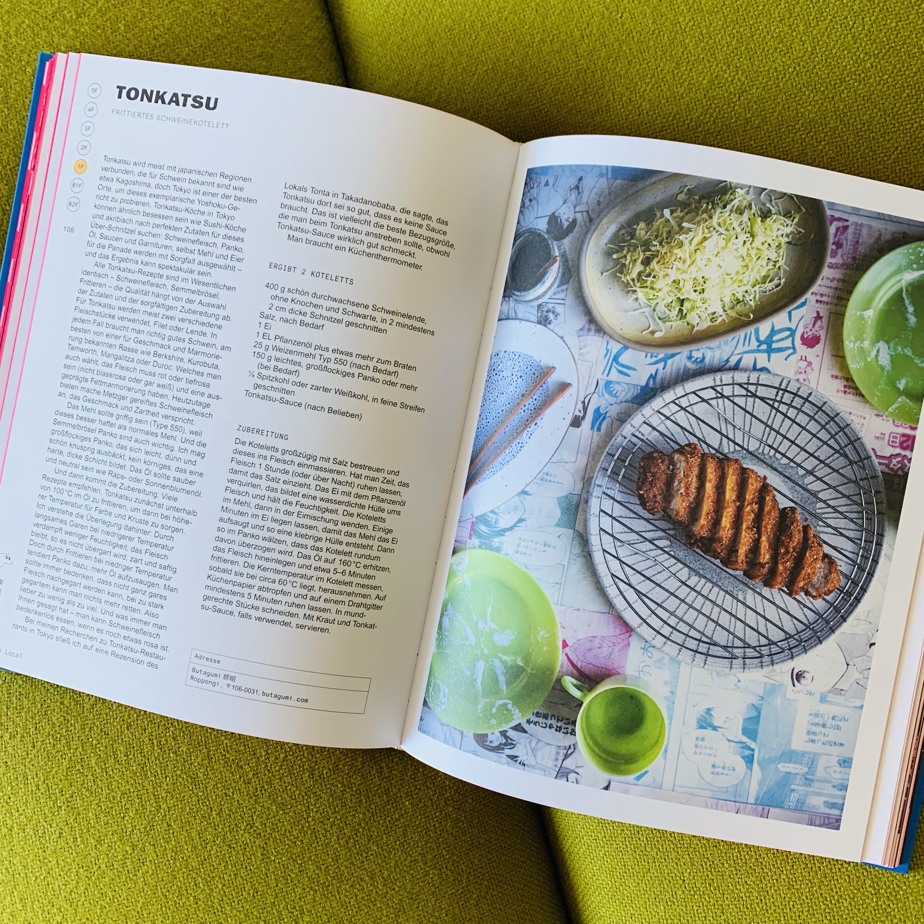 Tim Anderson kennt Tokyo und so zeigt er uns die unterschiedlichsten Plätze, Küchen und Restaurants, angefangen von den oberen Etagen in Luxushotels bis hin zu unterirdischen Kaufhäusern, das ist spannend und gibt interessante Einblicke. Dazu natürlich viele Rezepte – von Currys, Fried Chicken bis hin zu Automatengerichten, von einem Führer japanischer Zutaten bis zu den Spezialitäten der Stadt, ausländisch beeinflussten Köstlichkeiten, aber auch alte traditionelle Gerichte und natürlich zeitgemässe neue Küche. Es ist für jeden etwas dabei, auch wenn so manches Gericht zunächst seltsam anmutet und einige der Zutaten wohl schwer zu erhalten sind (trotz hiesiger grosser Auswahl an japanischen Zutaten in den asiatischen Supermärkten). Einige Rezepte sind zugegebenermassen wirklich Geschmacksache, ja fast schon für unseren heutigen Gaumen etwas abenteuerlich, wie etwa „Horumon-Yaki im Fukuoka-Stil“ mit Schweinedünndarm. Aber – Ich bin ja immer erst mal offen für alles, irgendwo bekommt man den schon, beim Metzger meines Vertrauens.