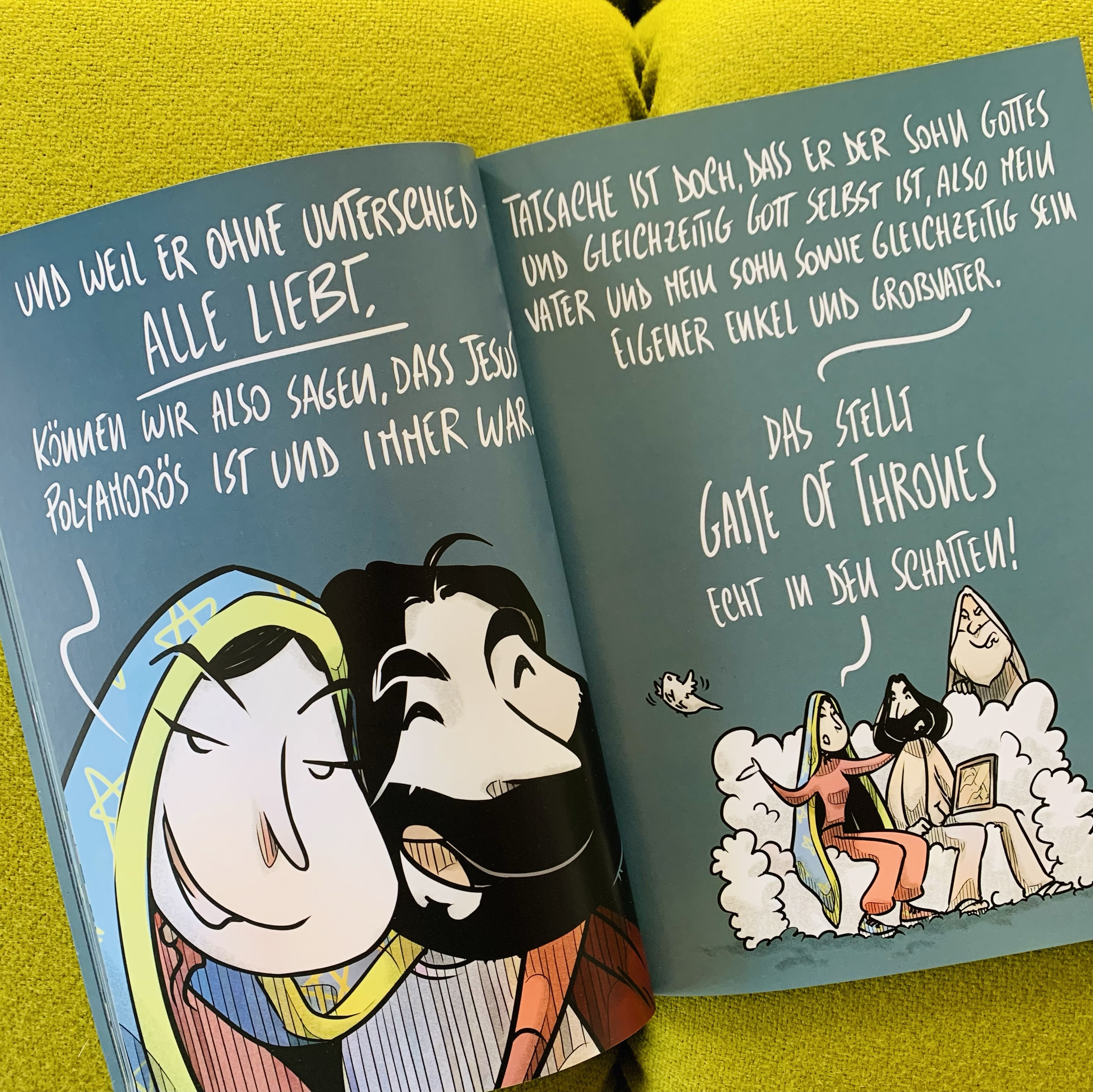 In der Edition Faust ist ein wirklich herrlicher Comic jetzt auf Deutsch erschienen: „Just Mary“. In einem erzkatholischen Land wie Italien eine mutige, aber wichtige Veröffentlichung, denn Paola Morpheus nimmt kein Blatt vor den Mund. Ihr Comic ist laut, bunt, schrill und bildet realitätsnah unser Leben ab, zeigt all die bunten und schillernden Facetten, denen sich die katholische Kirche mit ihrer Altherren-Riege in Rom vehement verweigert.