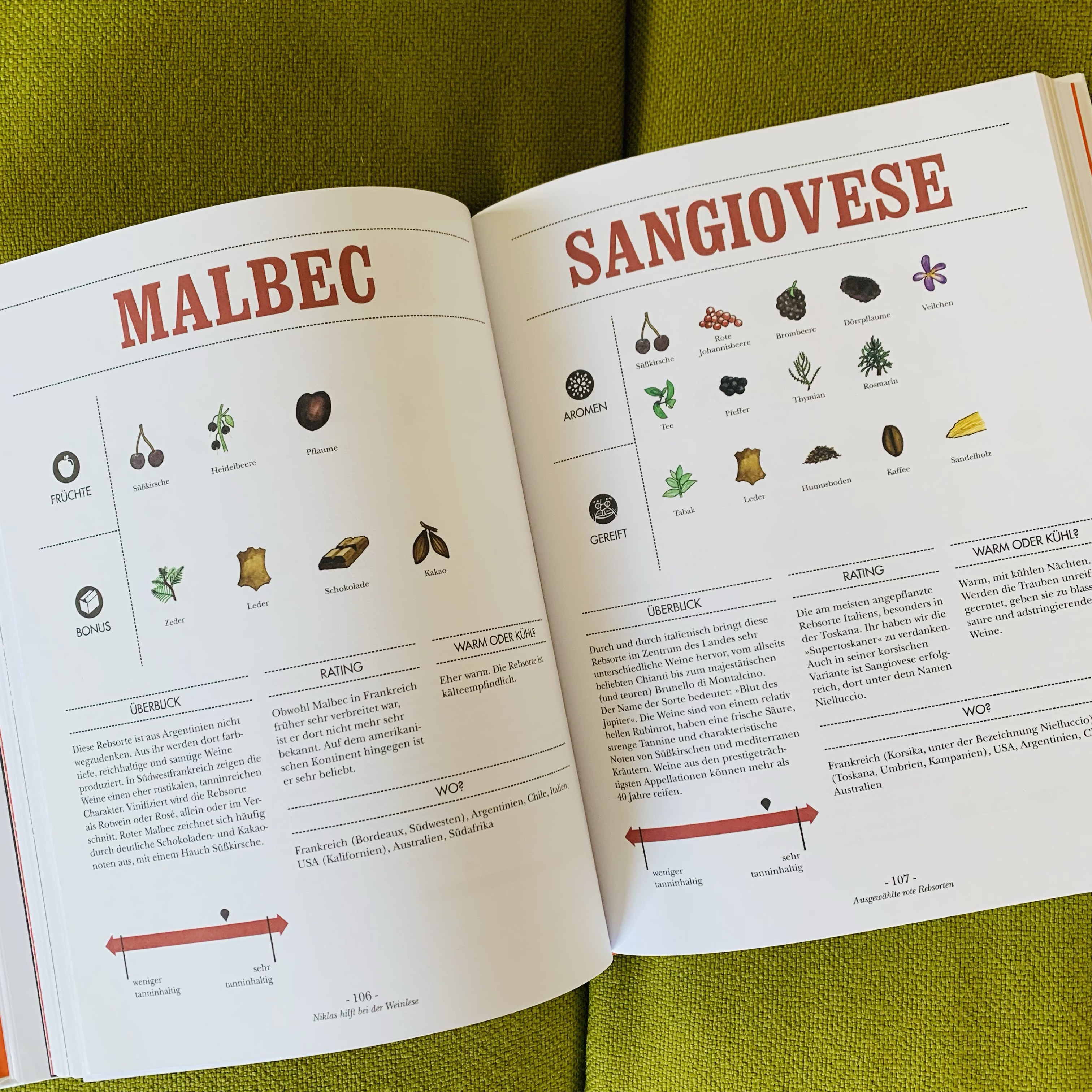 Detaillierte Infos über Weinanbaugebiete und Rebsorten in Deutschland, Österreich und der Schweiz machen dieses Weinbuch komplett, ergänzend dazu Rebsorten und Aromaprofile sowie die bedeutendsten Anbaugebiete weltweit. Das Buch ist leicht verständlich und humorvoll illustriert – ein wirklich nützlicher Ratgeber und ein schönes Geschenk sowieso.