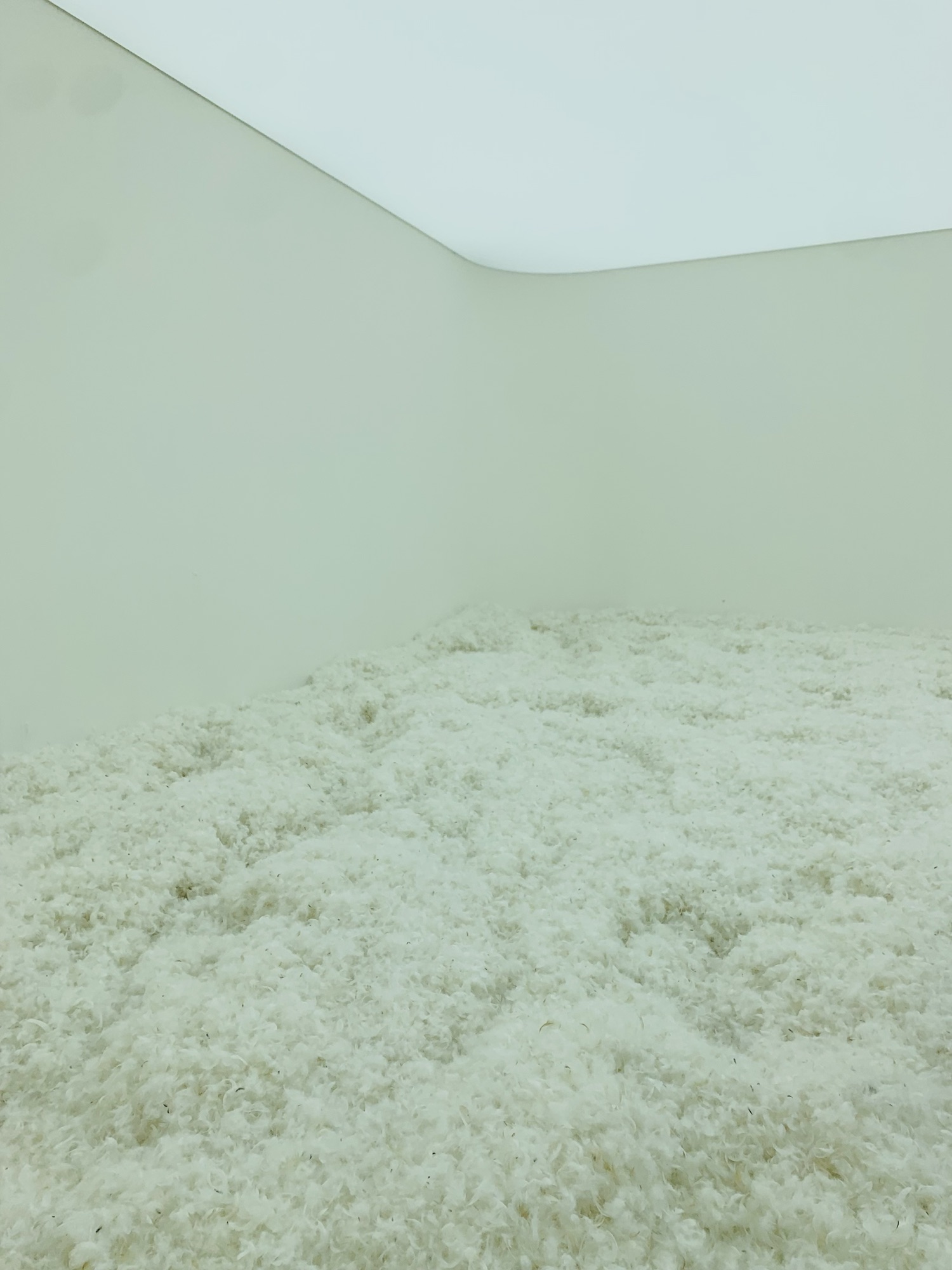 WERKE: Environment (Christian Megert, 1968) – hole in home (Ferdinand Spindel, 1968) – Luna (Fabio Mauri, 1968) – Film Ambiente (Marinella Pirelli, 2022) – Vento di s. e. velocità 40 nodi (Laura Grisi, 1968) – Penetrable blanco y amarillo (Jesús Rafael Soto, 1968) – Fanflastic (USCO, 1968) – Ambiente spaziale (Luca Fontana, 1967) – Une caverne de l’anti-matière, 1958-1959) – Ramera Pink White (James Turell, 1969) – Feather Room (Judy Chicago, 1966) – Passageway (Robert Morris, 1961) – Spazio elastico (Gianni Colombo, 1967) – Sound Breaking Wall (Bruce Nauman, 1969)
