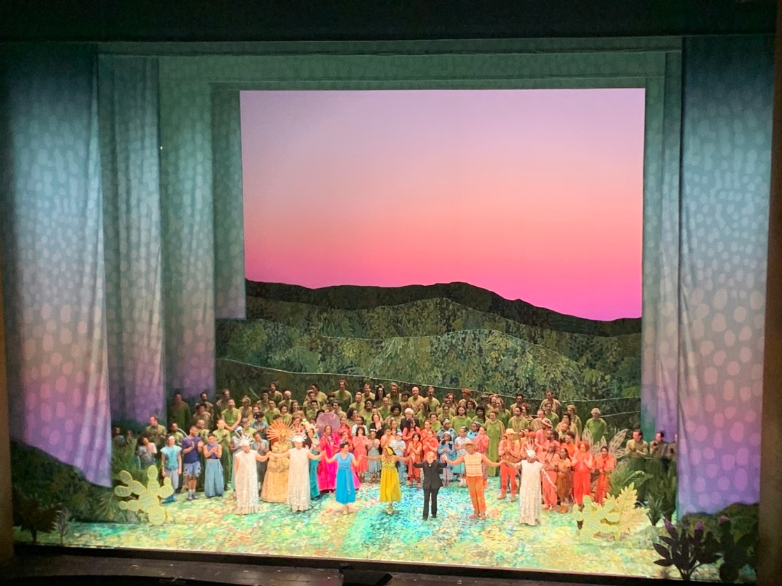 Inhaltlich ist „El Niño“ eine einfach zu beschreibende Geschichte und doch ist es gleichzeitig auch sehr komplex. Das Stück (UA 2000 am Théatre du Châtelet, Paris) ist ein zweigeteiltes Werk, in dem Adams versucht zu verstehen, was ein Wunder bedeutet. Es ist ein Opern-Oratorium, dass die Tradition geistlicher Werke wie Bach und Händel in unsere Zeit transportiert. „El Niño“ besteht aus 24 Abschnitten, von denen einige die Parallelen zwischen den biblischen Berichten der Geburt Jesu und heutigen Ereignissen wie Flucht und Vertreibung betonen. Ganz banal gesagt, erzählt das Stück die Reise von Maria und Joseph, verwendet dabei neben Texten der King James Bibel auch Poesie südamerikanischer, überwiegend weiblicher, Autor:innen, zitiert Hildegard von Bingen und Martin Luther. Es geht um das Wunder der Empfängnis und der Geburt, immer im historischen Kontext und aktuellem Zeitbezug.. Blain-Cruz schafft es, all diese universellen Themen auf wunderbare Art und Weise mit bezaubernden und immer wieder überraschenden Bildern zu transportieren, eine gelungen bunte Melange, die etwas an Frida Kahlo, Gauguin, naive Kunst erinnert (Set Design: ADAM RIGG, Kostüme: MONTANA LEVI BLANCO), das Licht von YI ZHAO und die Projektionen von HANNAH WASILESKI sind bunt, leuchtend, kunstvoll. Die Entscheidung Tänzer:innen und Puppenspieler einzusetzen ist famos und erschafft eine zusätzliche Dimension. Klar, das Visuelle dieser Produktion ist sehr dominant, jedoch nie vordergründig oder nur plakativ und schafft eine stimmige Verbindung zu den wunderbaren Klängen von John Adams, dessen ganz eigene musikalische, eher minimalistische Sprache mir bereits sehr gut in der Pariser Produktion von „Nixon in China“ 2023 und in vielen Konzerten des Tonhalle Orchesters Zürich gefallen hat. John Adams war dort in der Saison 2021/22 programmatisch sehr präsent, hat auch selbst ein Konzert dirigiert. Die Musik dieses Werks ist farbenreich und absolut vielschichtig, die Instrumentierung bietet wunderbare Klangfarben, egal ob vom Schlagwerk, den Samplern, Gitarren oder Keyboards, die Orchesterbesetzung ist riesig. Alsop erschafft mit dem Orchester der MET einen fulminanten, differenzierten Klangkörper, der auch in der Dynamik fein ausgelotet und absolut sängerfreundlich klingt. Was für ein Genuss! Der Chor hat viel zu tun, klingt satt und hervorragend einstudiert. Die vielen Choräle fungieren wie ein eigenes Gestaltungsmittel, als wären sie abgestimmt auf die unglaubliche farbige Visualisierung, dieser Klangteppich nimmt gefangen und betört, das ist es, was ich an der Musik von John Adams so sehr mag. Die komplette Besetzung ist grossartig: JULIA BULLOCK (Sopran), J‘NAI BRIDGES (Mezzosopran), DAVÓNE TINES (Bariton), dazu drei grossartige Countertenöre: KEY‘MON W. MURRAH, SIMAN CHUNG, ERIC JURENAS. Ich bin kein grosser Fan von Kindern respektive Kinderchören auf der Bühne, aber wenn sich zuletzt der Vorhang langsam senkt und die immer besinnlicher, ruhiger, leiser werdenden gesungenen Phrasen der an der Rampe stehenden Kinder dieses Werk beenden, dann ist das schon ein sehr grosser und emotionaler Moment. Wann hat man die Möglichkeit ein derart spezielles Werk auf der Bühne zu leben? Was für eine wunderbare Vorstellung! Das Publikum ist hingerissen. Wir sind es auch!