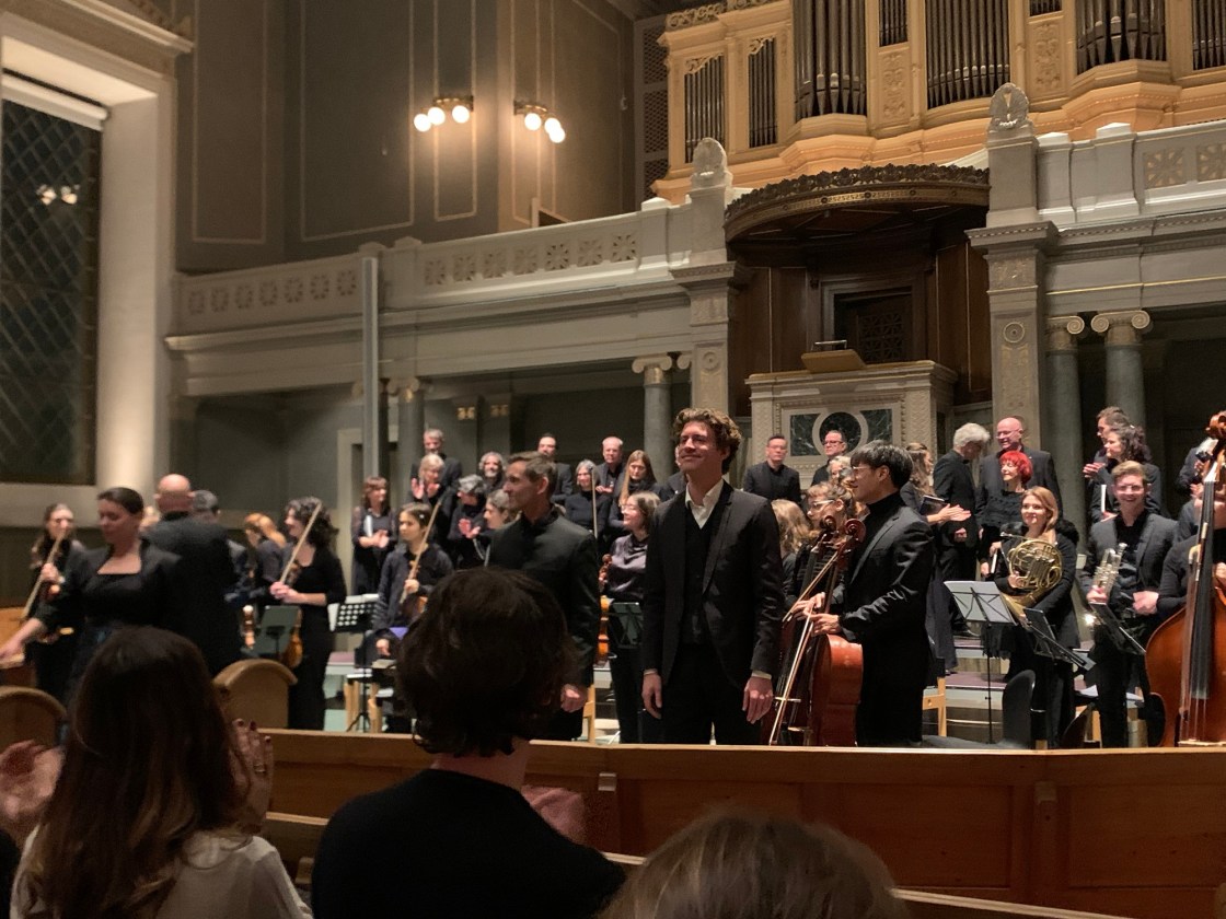 Es war mein erster Besuch in diesem Kirchenbau einer ehemaligen Zürcher Aussengemeinde. Sehr schön liegt die Kirche in dieser Parkanlage mit seinem Rosengarten und ich darf nicht vergessen, einen Besuch im Sommer zu planen. Ein sehr schöner Konzert-Raum mit guter Akustik und der alten Tonhalle-Orgel. Ich kannte bisher nur Mendelssohns „Elias“ (zuletzt gehört unter Thomas Hengelbrock 2019 in der Tonhalle Maag Zürich), nun also mit „Paulus“ eine wirkliche Entdeckung – sehr schöne Musik, bei der man permanent das Gefühl hat, sie schon seit Jahr und Tag zu kennen, das liegt wohl an dem zitierten Bach-Choral „Wachet auf, ruft uns die Stimme“. Es behandelt das Leben und Wirken des Apostels Paulus. Der erste Teil beschreibt die Wandlung vom „Saulus zum Paulus“, im zweiten Teil wird von dessen Arbeit als Missionar berichtet. Man erfährt von der Christenverfolgung und dem Märtyrertod des Stephanus – hier hat man natürlich ganz besonders die „Chorausrufe „Steiniget ihn!“ nachhaltig im Ohr. Eigentlich als monumentales grosses Chorwerk angelegt, entfaltet es für mich jedoch in dieser kleinen kammermusikalischen Fassung seinen wahren Reiz. Diese Bearbeitung von JOACHIM LINKELMANN klingt äusserst transparent, stellenweise filigran, ohne jemals „klein“ oder „dünn“ zu wirken. Vor allem in Chorpassagen wie „Siehe, wir preisen selig…“ erklingt eine fast schon zärtliche Sanftheit. Zudem hat das Werk zwei wunderbare Apostelduette und mehrere Soli. Bestechend in diesem Konzert ist vor allem der Tenor MAXIMILIAN VOGLER und der Bassist MATTHIAS HELM, die Stimme der Sopranistin GUNHILD ALSVIK muss man mögen, mein Geschmack ist sie nicht, zu schneidend, zu wenig in Harmonie mit den beiden Männern, klang sie für mich häufig wie ein Fremdkörper in dieser doch eher zarten „Paulus“ -Interpretation. Wirklich bezaubernd hingegen ist der Treueschwur, die Kavatine „Sei getreu bis in den Tod“ von Maximilian Vogler mit dem lyrischen Solo-Cello (sehr schön: SOLME HONG) an seiner Seite. So kurz vor dem Finale, war dies wohl einer der bewegendsten Momente des Konzertes. Der Chor tönt hervorragend einstudiert, leider gibt es ausgerechnet beim Choral „Hier ist des Herren Tempel“ einen sehr holprigen Einsatz, etwas schade, aber wohl auch der Premieren-Nervosität geschuldet. Anyway, ein sehr schönes Konzert und ein wohlklingender Start ins graue Novemberwochenende.