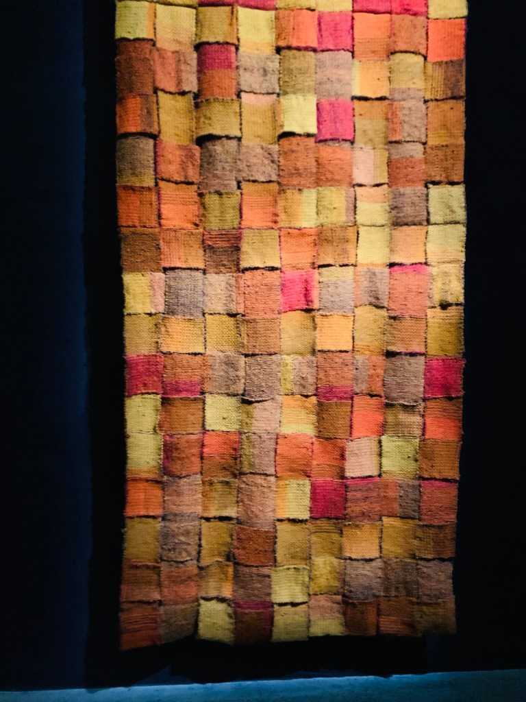 Im Untergeschoss ebenfalls wunderschön präsentiert sind weitere feine Webarbeiten und die „Estolas“, hier kann man auch verweilen und sich am vielen Gold erfreuen – an Megalithen, Totems, Menhiren und Sternensteinen.