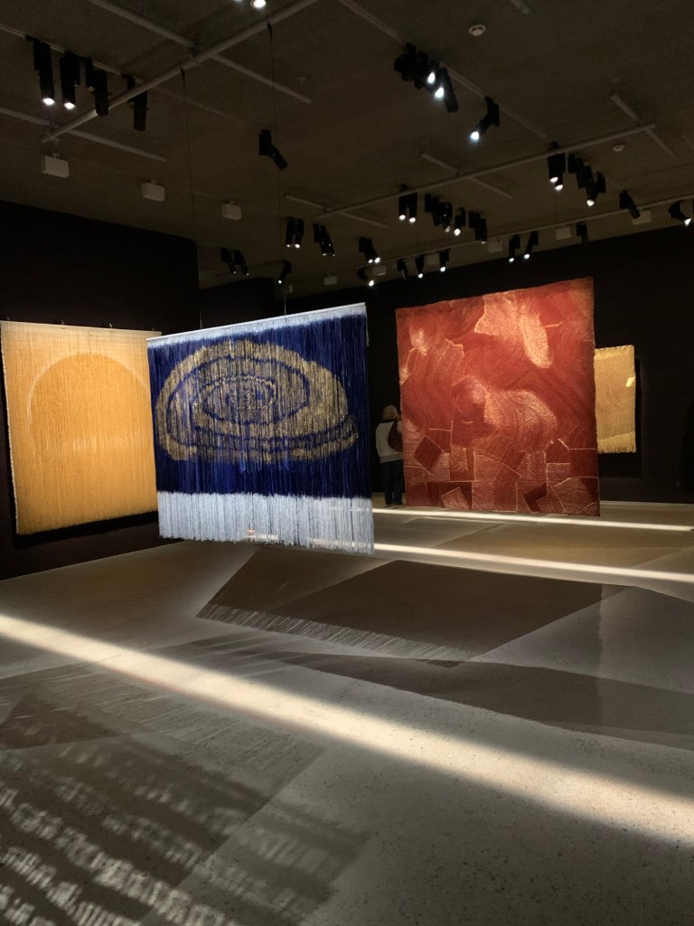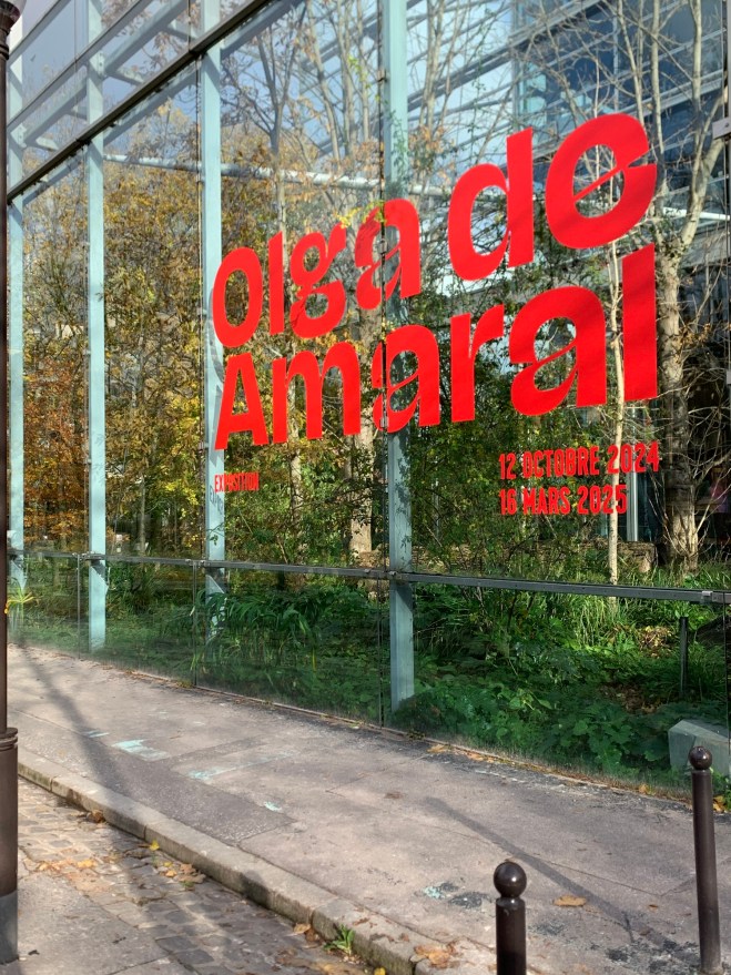 Vor einigen Jahren – im Jahr 2022 – war im Zürcher Museum für Gestaltung bereits eine wundervolle Ausstellung textiler Kunst, unter anderem gab es auch hier Werke von Olga de Amaral zu sehen. Die Show hiess „Textiler Garten“ und hat mich nachhaltig beeindruckt. Nun eine komplette Ausstellung mit ihren Werken in Paris zu sehen, hat mich sehr begeistert. Eine grosse Ausstellung mit vielen Exponaten über zwei Etagen der Fondation Cartier, umringt von einem ebenfalls sehenswerten kleinen Park. Zum 40. Geburtstag der Fondation im Oktober 2024 gab diese bekannt, dass sie 2025 das Gebäude verlassen und ins Herz der Stadt ziehen wird. Direkt am Place du Palais-Royal entstehen dort bereits die neuen von Jean Nouvel entworfenen Räume.