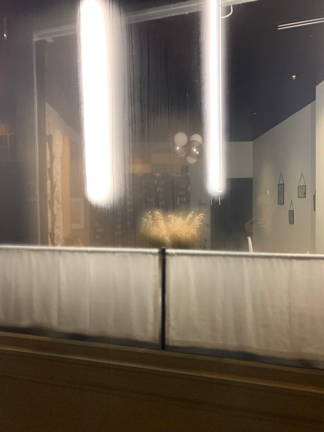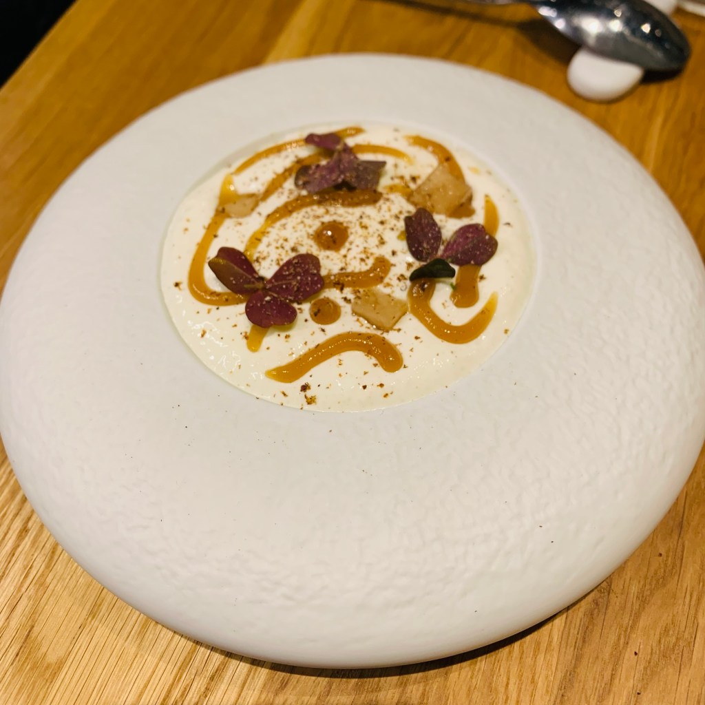 Im kleinen, wohltuend reduziert eingerichteten und folklorefreien Restaurant mit seinen edlen Materialien in schlichten Farbtönen und offener Küche wird man sehr herzlich empfangen und zuvorkommend durch sämtliche Speisenfolgen bedient. Für den Abend gibt es ein Tasting-Menü und wir haben uns für die 7-Gang-Variante mit Weinbegleitung entschieden: