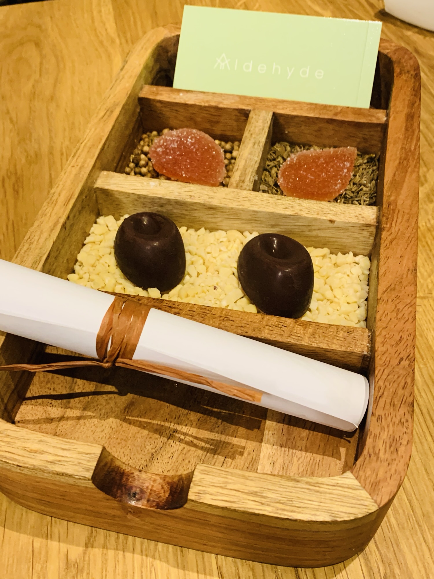 Sämtliche Aromen von Zitrusfrüchten, Gewürzen, Kräutern und Essenzen werden eher sparsam verwendet, es ist geschmacklich eine eher zarte, jedoch auf bürgerlicher Herkunft basierende Küche, dazu wunderschön angerichtet und gemäss Marzouks Erzählungen enthalten viele Gerichte Erinnerungen an die Küche seiner Kindheit – ja ja, das gute alte bzw. neue Story-Telling. Ein kulinarisch sensationeller, langer Abend – kein Wunder erwartet man bald die ersten Sterne und weitere Auszeichnungen. „Aldehyde“ – wir kommen wieder!