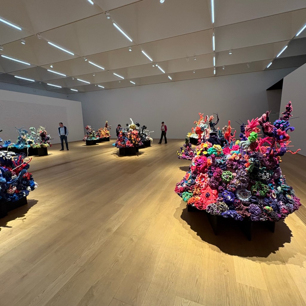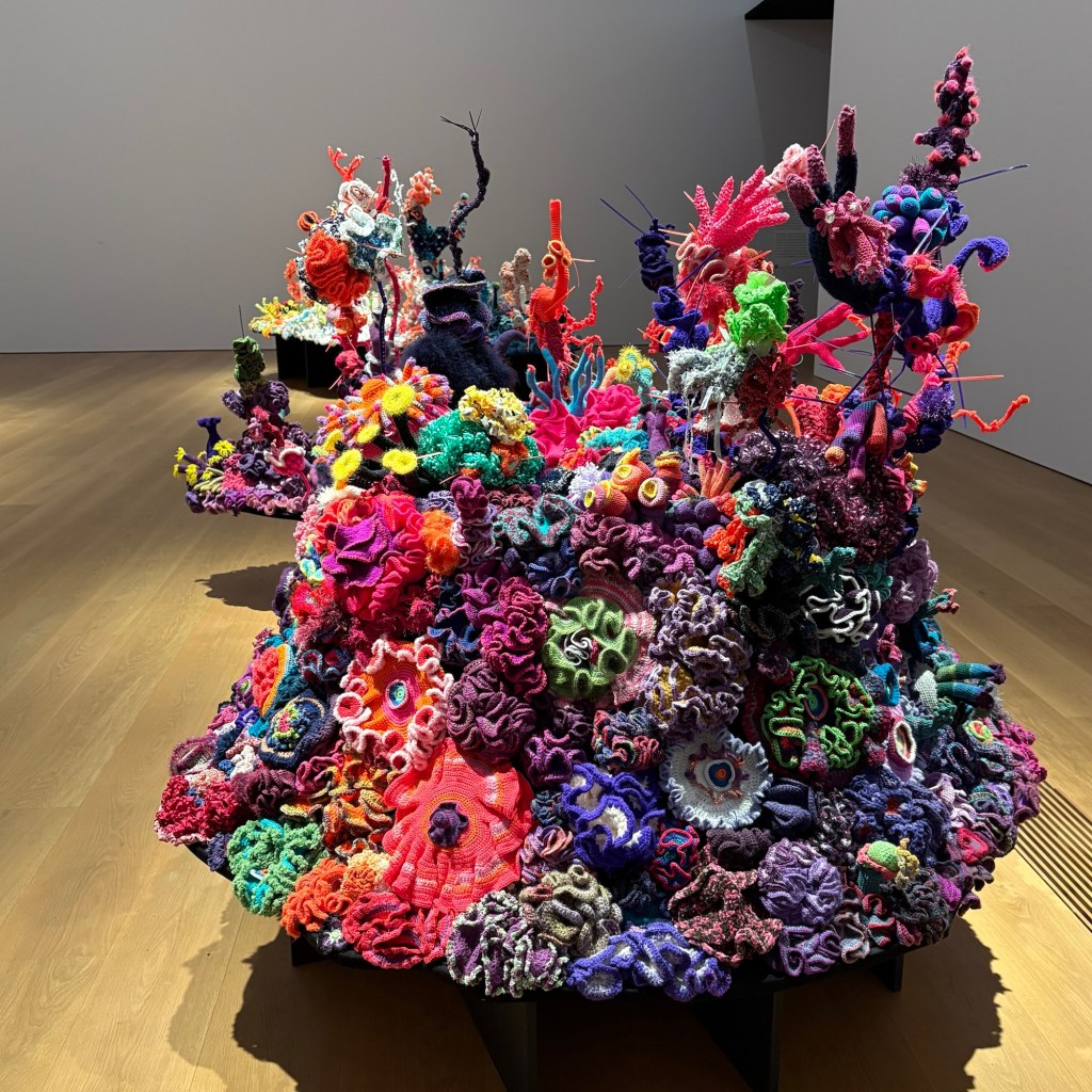 Die Ausstellung ist gut besucht, kein Wunder, denn sie untersucht unsere Beziehung zum Meer, von figurativen Werken des 19. Jahrhunderts bis heute – da ist für jeden was dabei und so begegnet man neben technischen Erfindungen wie der Taucherglocke oder dem Aquarium auch verschiedenen Gerätschaften und natürlich Gemälden und Skulpturen und im 2. Stock dem wundervollen (Forschungsprojekt-)Projekt Crochet Coral Reef, einem gehäkelten Korallenriff, von Margaret und Christine Wertheim sowie dem Institute For Figuring.