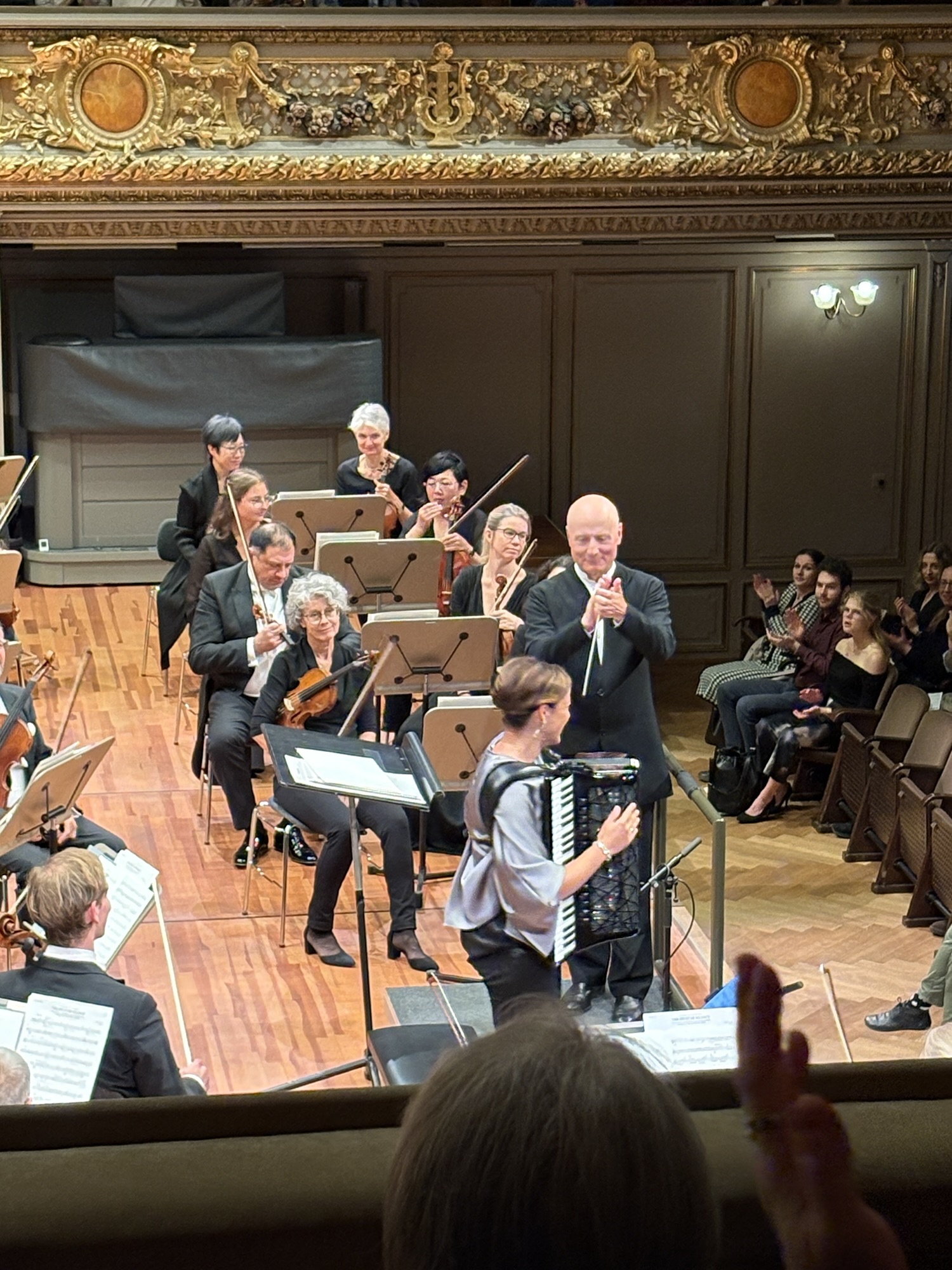 Ich bin immer sehr dankbar, wenn es nicht das übliche Konzert-Repertoire zu hören gibt und in dieser Saison 25/26 gibt es tatsächlich einige neue Komponist:innen und deren Werke im Programm des Tonhalle Orchesters zu entdecken – das finde ich ganz wunderbar. Es ist Musical Director PAAVO JÄRVI zu verdanken, dass wir sehr viel von Arvo Pärt zu hören bekommen, dessen Werke für mich immer wieder ein Konzerthighlight sind, vor allem seine kurzen Werke zum Konzertbeginn lassen mich durchatmen und ankommen. Diese Programmatik hat Järvi bereits bei seinem Antrittskonzert 2019 mit der Uraufführung der Neufassung von Pärts „Wenn Bach Bienen gezüchtet hätte…“ manifestiert und seitdem gibt es immer wieder dessen wunderbare Musik hören, so auch am 19. Oktober, wenn es mit dem „Estonian Festival Orchester“ unter Paavo Järvi und einem reinen Arvo Pärt – Programm quasi eine Hommage zu dessen 90. Geburtstag gibt – very looking forward! Nun aber zu diesem Konzert: Nach dem ruhigen „Silhouette“, einer Hommage an Gustav Eiffel für Streichorchester und Schlagzeug von Pärt, hören wir das Konzert für Akkordeon und Orchester des estnischen Komponisten Tõnu Kõrvits (kannte ich nicht – eine Entdeckung!) und sofort assoziiert man die Klänge mit Tänzen verschiedener Länder, fühlt sich versetzt in ferne Regionen, ohne diese wirklich einordnen zu können, nach dem Beginn mit einer reinen Geräuschkulisse aus dem Akkordeon folgen doch einige sehr melodiöse Momente, für mich ein idealer Moment loszulassen und sich ganz den Klängen hinzugeben, aber wirklich bewegt hat mich dann vor der Pause noch das relativ kurze Stück „The Fruit of Silence“ des lettischen Komponisten Peteris Vasks von 2013 (Arrangement 2024), welches Ksenija Sidorova und Paavo Järvi gewidmet ist. Diese Komposition, von einem Gedicht der heiliggesprochenen Ordensfrau Mutter Theresa inspiriert, hat so viel Tiefe und trotz eher kleiner Besetzung (Akkordeon, Vibraphon und Streicher) eine immense Klangvielfalt, die Järvi und Sidorova zelebrieren und uns mit auf diese kurze und sehr besinnliche Reise nehmen.
