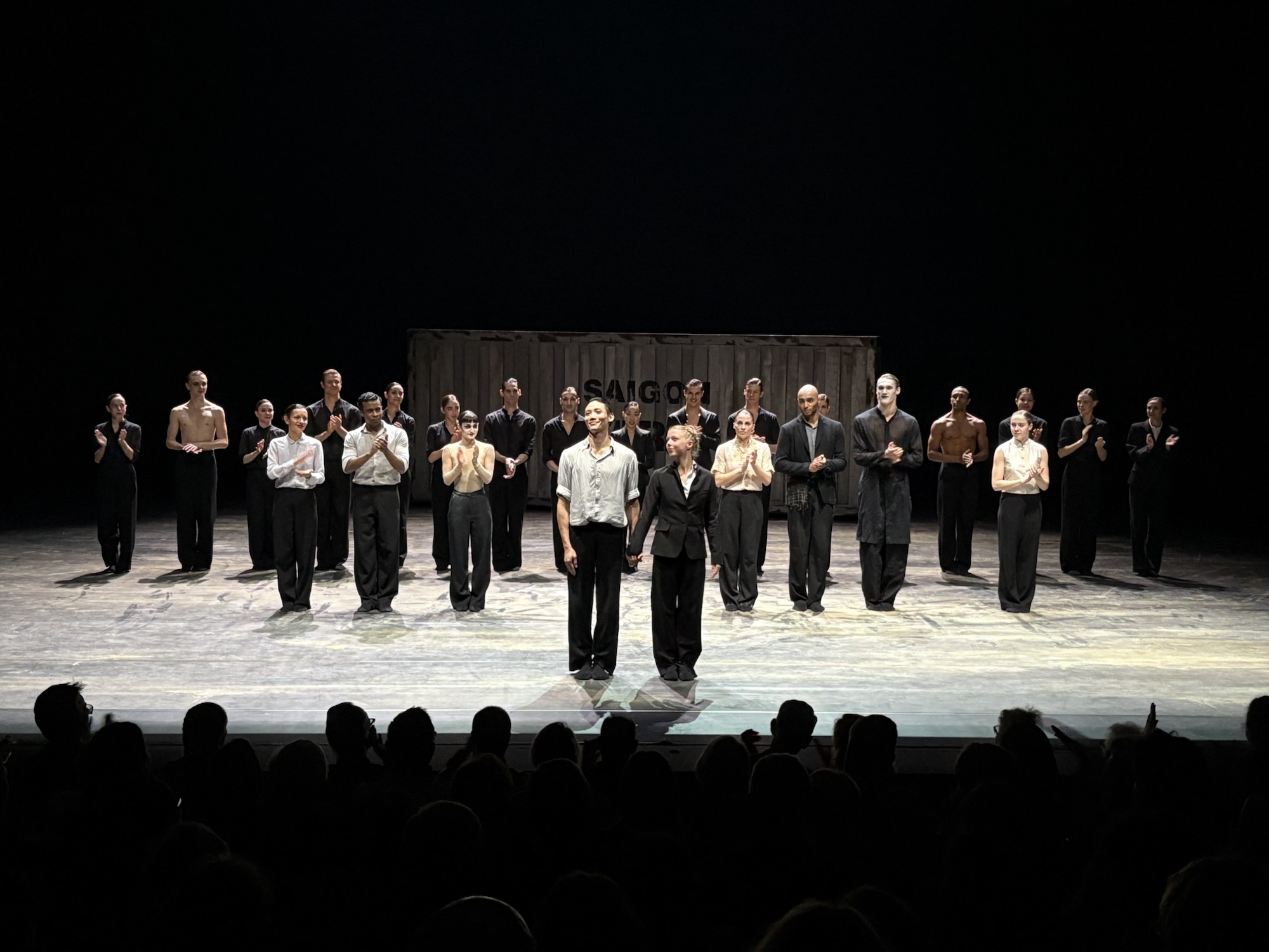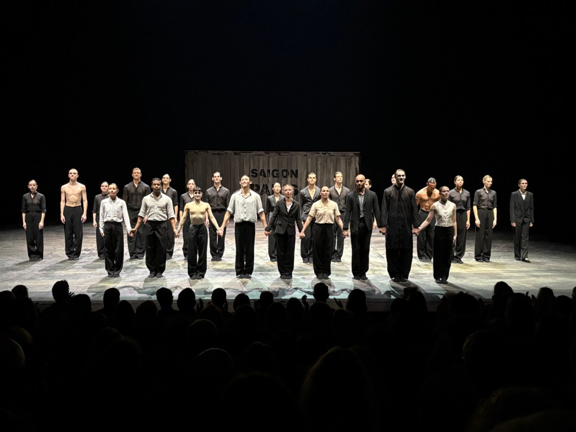 Goecke, von dem bereits auch einiges in Zürich zu sehen war (etwa („Nijinski„, „Almost Blue“ oder „Petruschka“) und dessen ganz eigene Tanzsprache ich immer wieder wunderbar finde, eröffnet also sein Wirken am Basler Haus mit „Der Liebhaber“ nach dem Roman von Marguerite Duras, der bereits 1984 erschienen ist (und von Jean-Jacques Annaud 1991 verfilmt wurde). Die Produktion ist nicht neu und hatte ihre Uraufführung bereits 2021 am Staatsballett Hannover. Wie beim Roman (der mit dem Prix Goncourt ausgezeichnet wurde und wohl das erfolgreichste Werk von Duras ist) hat auch diese choreographische Umsetzung keine stringende Handlungsabfolge, sondern ist eine Collage aus Erinnerungsfragmenten, die Duras mehr als 50 Jahre nach den Geschehnissen aufschrieb. Die Geschichte spielt in der französischen Kolonie Indochina (dem heutigen Vietnam) in den 30er Jahren und spannt den Bogen von der ersten Begegnung des französischen, aber in Südostasien aufgewachsenen fünfzehnjährigen Mädchens mit dem 12 Jahre älteren Chinesen, deren (sexueller) unerhörter Amour Fou bis hin zur Abreise des Mädchens zurück nach Frankreich und einem letzten Telefonat mit dem Liebesgeständnis des Liebhabers nach vielen Jahren. In den 75 Minuten erzeugt Goecke mit seinem Ensemble einen Sog, dem man sich nicht entziehen kann, erschafft eindrucksvolle Bilder und Stimmungen (grossartiges Lichtdesign von UDO HABERLAND, Bühne/Kostüm: MICHAELA SPRINGER/MARVIN OTT) und entlässt einen dann nach einem bewegenden Schluss mit den Originalzitaten des Romans in deutscher Übersetzung in die Nacht. Und alles ist vorhanden: die wohl ziemlich verkorkste Familie des Mädchens, aber auch des Sohns wohlhabender Chinesen und sogar ein Zusammentreffen sehen wir, dokumentiert durch Fotoblitze und schon ist dieser kurz auflodernde Moment der Normalität auch wieder vorbei in dieser sonst eher sehr dunkel und düster gehaltenen Szenerie, grossartig auch wenn die Limousine des Chinesen in der Ferne durch die Dunkelheit die Bühne überquert und immer wieder auch Rauchschwaden, Nebel, Kreidestaub, dezent eingesetzt, aber wirkungsvolle Stimmungen erzeugend. Marco Goecke schafft es gleich zu Beginn, dem Publikum diese Exotik zu vermitteln, lässt uns eintauchen in diese andere Welt am Mekong. Nachhaltig hat man dann sehr lange immer noch die sehr starke Musikauswahl – Maurice Ravel, Lili Boulanger, Zizi Jeanmaire, Frédéric Chopin, Claude Debussy, Unsuk Chin und vor allem zu Beginn diese wundervollen alten, historischen Aufnahmen vietnamesischer Sänger:innen – im Ohr. Was immer wieder sehr beeindruckt, sind diese schnellen, oftmals fast schon fiebrig wirkenden Bewegungsabläufe mit den für Goecke so typischen schnellen Händen und Zuckungen des ganzen Körpers, die trotz ihrer Heftigkeit oftmals eine tiefe Ruhe und Sinnlichkeit ausstrahlen und genau das macht auch die ganze eigene Ästhetik seiner Arbeiten aus. Das mag man oder man mag es nicht, dazwischen gibt es nicht viel und es ist bewundernswert, wie harmonisch und präzise all diese choreografierten Momente in diesem neuen Ensemble bereits wirken, als würden sie schon seit langer Zeit zusammen tanzen. Die Besetzung der von mir besuchten Vorstellung fand ich ganz wunderbar: LISA VAN CAUWENBERGH ist ein zerbrechliches, zartes Mädchen und doch spürt man ihre Stärke und ihr Durchsetzungsvermögen – sie weiss, was sie will und ist zusammen mit dem Liebhaber von CHENG-AN WU eine absolut gelungene Paarung, auch die anderen Rollen überzeugen mich: GIADA ZANOTTI (Mutter), JAMAL UHLMANN (älterer Bruder), ANTHONY RAMIANDRISOA (jüngerer Bruder), LYDIA CARUSO (Verrückte), FEIZA BESSARD (Helene), FLORIS PUTS/ELLIANA MANNELLA (Vater/Mutter des Liebhabers), CARLO WIEDEN DOBÓN (Duras) und das ganze Ensemble (EVA BLUNNO, SANDRA BOURDAIS, ANA PAULA CAMARGO, MICHELANGELO CHELUCCI, FILIPPO FERRARI, DAYNE FLORENCE, PARKER GAMBLE, CHISATO IDE, CARLOS KERR JR., RACHELLE ANAIS SCOTT, VERÓNICE SEGOVIA, LOUIS STEINMETZ, MARIANA VIEIRA (als Gast), NIKITA ZDRAVKIVIC, JULIE L. BJELKE (Erasmus).