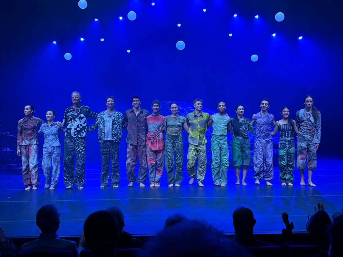 Und was bleibt? Ein Erstaunen über die Bildwirkung des Settings, die grandiosen Klänge der beiden Tonkünstler, die wunderschönen Kostüme von DÉSIRÉE MÜLLER, deren Prints inspiriert von regionaler Spitze und traditionellen Mustern, gleichzeitig absolut modern in ihrer Hightech-Anmutung von funktionaler Trekking-, Outdoorkleidung und abermals stimmungsvolles Licht von LUKAS MARIAN. Ein Abend mit zwei Arbeiten die gegensätzlicher nicht sein könnten und jede Choreografie auf ihre ganze eigene Art und Weise wundervoll! Und einmal mehr zeigt dieser Abend das Können und auch den Mut von FRANK FANNAR PEDERSEN und JAVIER RODRÍGUEZ COBOS, die für Konzept, Choreographie und Text in Zusammenarbeit mit diesem famosen Ensemble verantwortlich zeichnen. Was für ein grosses Glück für das Haus, hat Pedersen seinen Vertrag als Leiter der Sparte Tanz in St. Gallen bis 2030 verlängert. Ja, ich weiss, das war jetzt alles sehr euphorisch, aber ich muss zugeben, ich bin tatsächlich etwas verliebt in diese Tanz-Kompanie, die mich immer wieder begeistert und nach dem energiegeladenen „In the Brain“ von Hofesh Shechter am Vorabend in Zürich, war diese tolle Premiere in St. Gallen ein weiteres Highlight an diesem „Tanzwochenende“. Woohoo – lucky me.