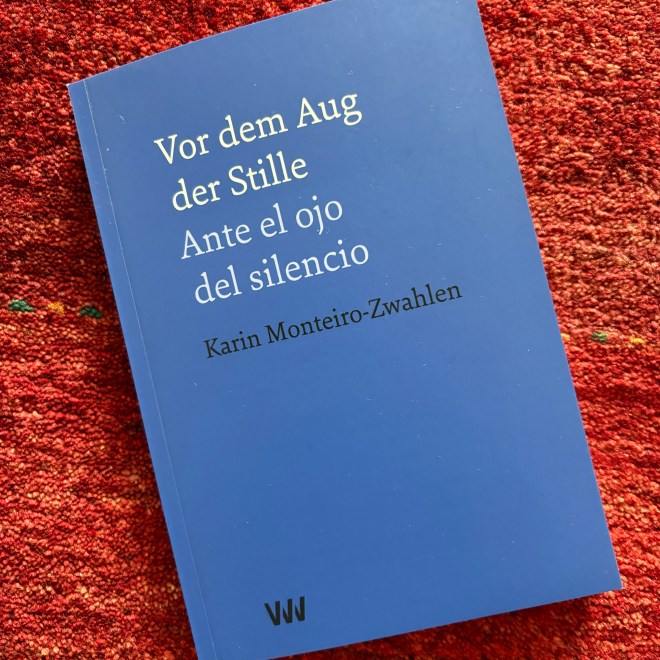 Und wie immer kommt Lyrik in den knapp bemessenen freien Lektürezeiten zu kurz, schade eigentlich, denn ich habe grosse Freude daran. Das wunderbare Gedichtbändchen „Vor dem Aug der Stille / Ante el ojo del silencio“ von KARIN MONTEIRO-ZWAHLEN lag auch zu lange auf meinem Bücherstapel neben dem Bett, bis ich es nun endlich in die Hand genommen habe und fast nicht mehr weglegen konnte…