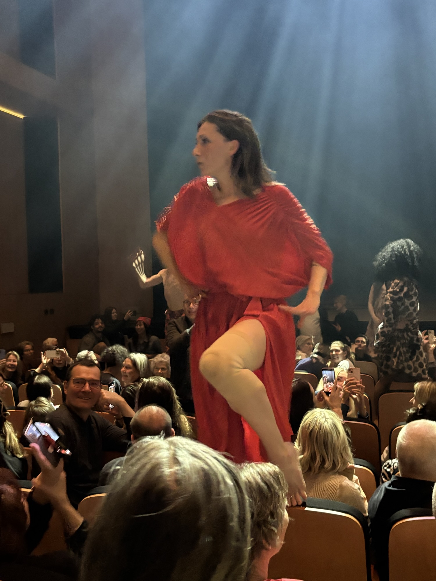 Die Erwartungshaltung bei Ekmans Arbeiten sind immer wieder gross, keine Überraschung, denn alle Arbeiten, die ich bisher von ihm gesehen habe, waren tatsächlich aussergewöhnlich, ja spektakulär, allen voran natürlich „PLAY“ in Paris oder „COW“ in Basel. Und so auch diesmal: „HAMMER“ ist eine Arbeit von 2022 und entstand für die GöteborgsOperans Danskompani – das Stück setzt sich kritisch mit den Medien auseinander, beschäftigt sich mit unserer aller Geilheit, sich permanent auf social media zu präsentieren, omnipräsent auf allen Kanälen zu sein und dabei alles Zwischenmenschliche zu vergessen. Wir bewegen uns in einer Welt von Likes und Followern, persönliche Beziehungen werden weniger, gehen verloren. Ekman schafft mit dem sehr grossen Ensemble von 30 Tänzer:innen starke Bilder, hält uns allen den Spiegel vor Augen, macht uns betroffen und lässt uns nachdenken, schafft aber auch viele Momente, in denen wir über uns selbst lachen müssen, über unsere Eitelkeit, etwa, wenn im ersten Teil – und das ist für mich wirklich einer der absolut grossen und stärksten Momente – das Ensemble die Bühne verlässt und zu uns in den Zuschauerraum kommt, sich verteilt, posed und uns alle auffordert, Fotos mit ihnen zu schiessen, um anschliessend mit einer spürbaren Aggression wieder auf die Bühne zurückzukehren, nach dem man sich von einer Hippie-ähnlichen Gesellschaft und absolut harmonischem Glück hat 30 Minuten lang einlullen lassen. Das führt zu Irritationen und hinterlässt einen irgendwie bitteren Nachgeschmack, wie schamlos das ist und wie sehr wir mitmachen, die Handys zücken, alles filmen und tatsächlich Selfies mit den Tänzer:innen schiessen. Fast schämt man sich ein wenig…